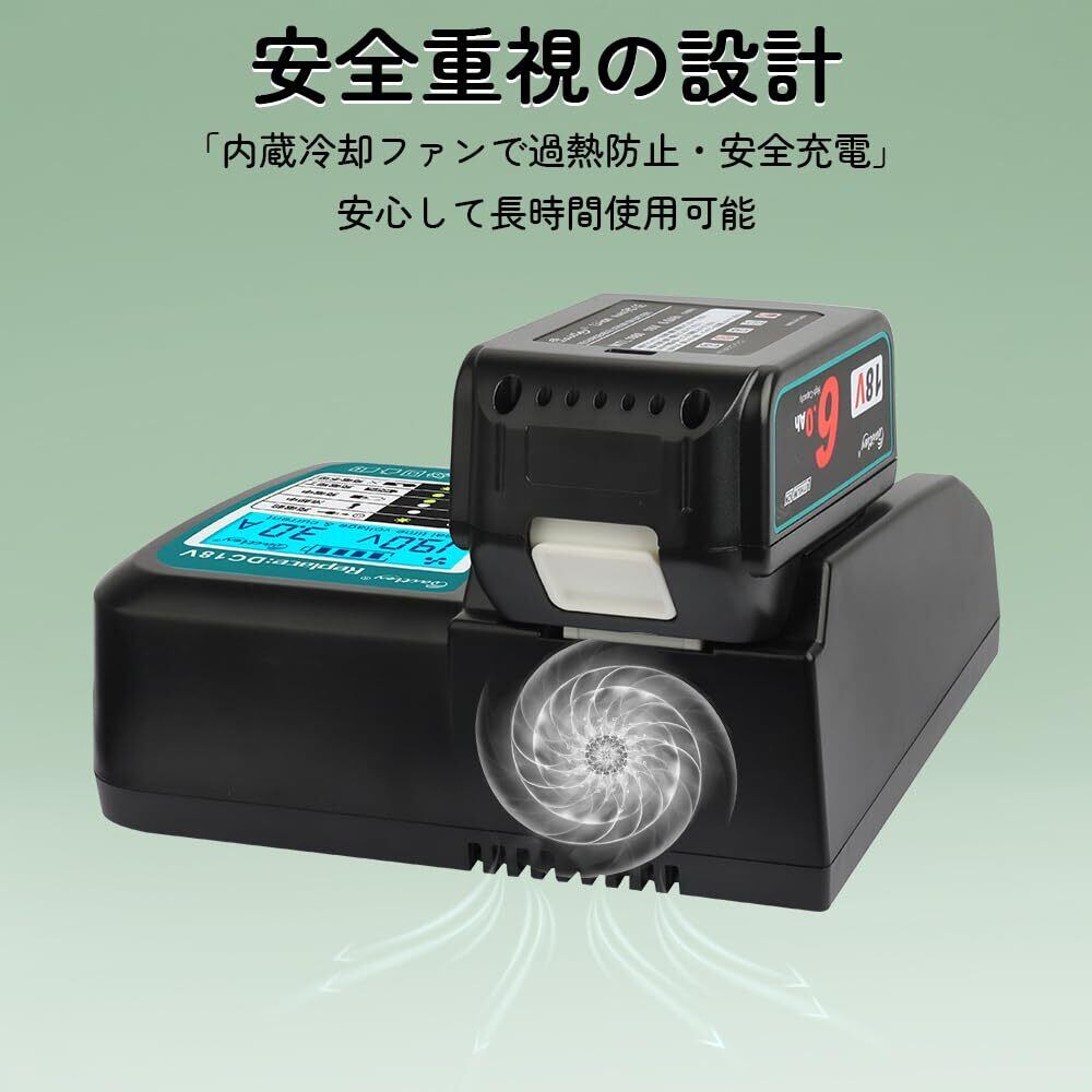 Waitleyマキタ DC18V充電器 互換 18V /14.4Vバッテリー充電器 冷却ファン付き 液晶パネル付き 充電開始/完了メロディ付 マキタ18V バッテリー 対応 BL1460 BL1430 BL1860 1830など充電可能 【バッテリー別売】