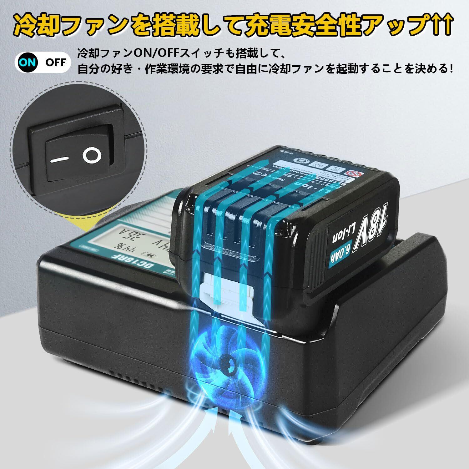 【冷却ファン付き】Gakkiti マキタ 充電器 DC18RF 14.4V-18V 用 互換品 14.4V/18Vリチウムイオンバッテリー用 スマホ等 充電用USBポート付 マキタ 電池 BL1430 BL1460 BL1860 BL1830B BL1850Bなど 充電可能 充電完了メロディ付 液晶付き 壁掛け可能 冷却ファンスイッチ搭載【PSE認証済】