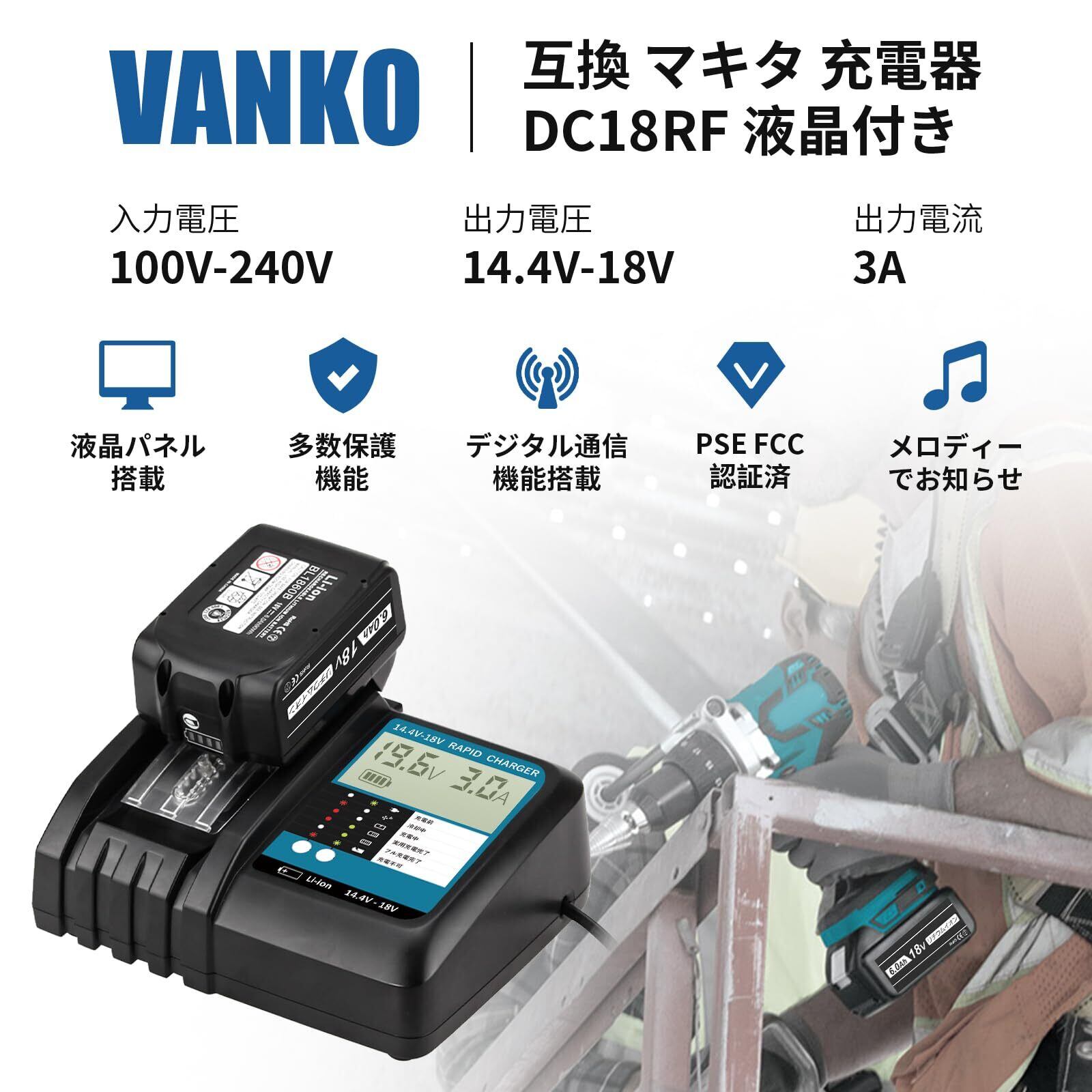 VANKO マキタ 充電器 DC18RF 液晶パネル付き マキタ 14.4v/18v 互換充電器 BL1415N BL1430B BL1460B BL1815N BL1830B BL1860Bなど充電可能 リチウムイオンバッテリー用 連続充電可能 メロディ付 PSE認証済