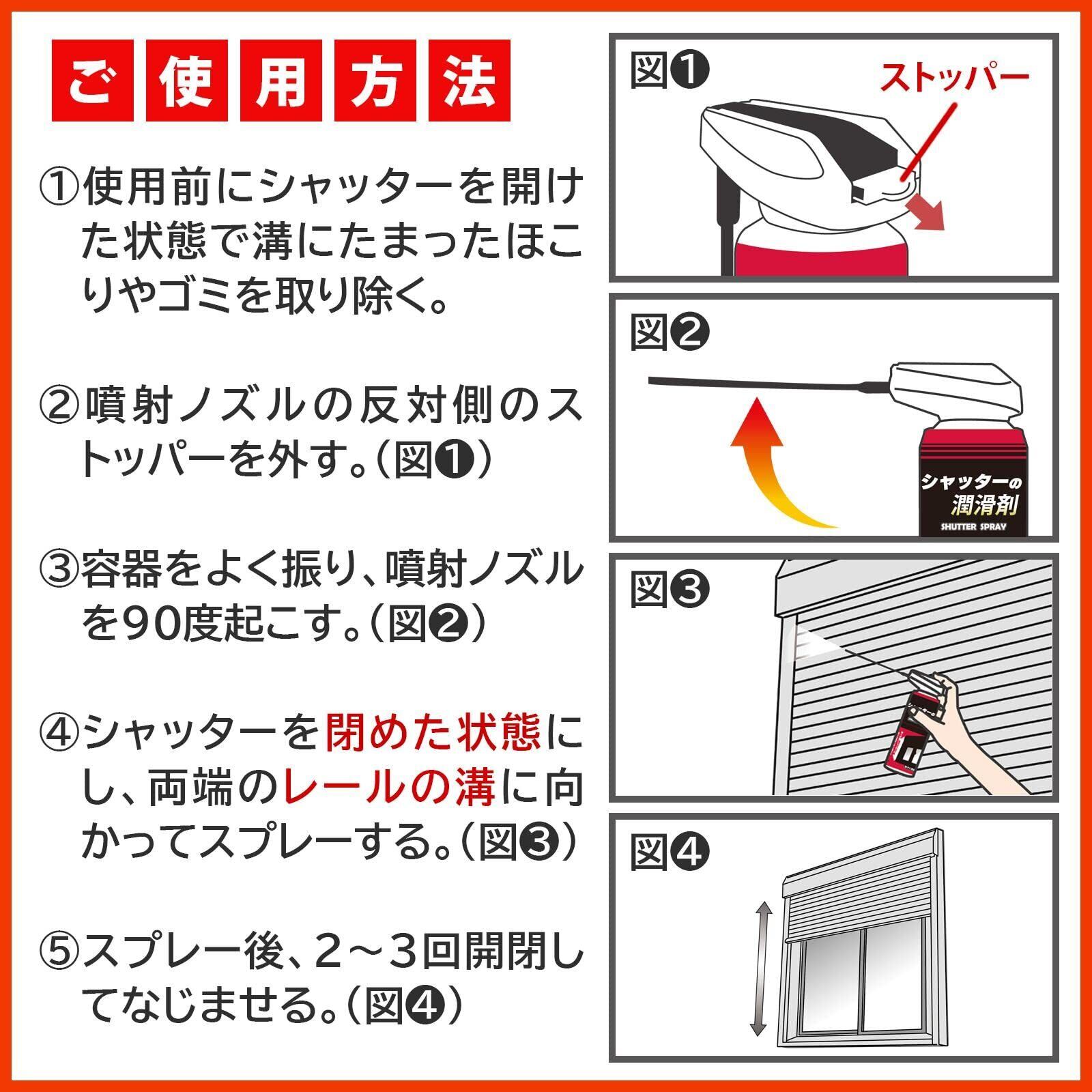 シャッターにスプレーして、滑りの悪さや気になるキシミ音を軽減!