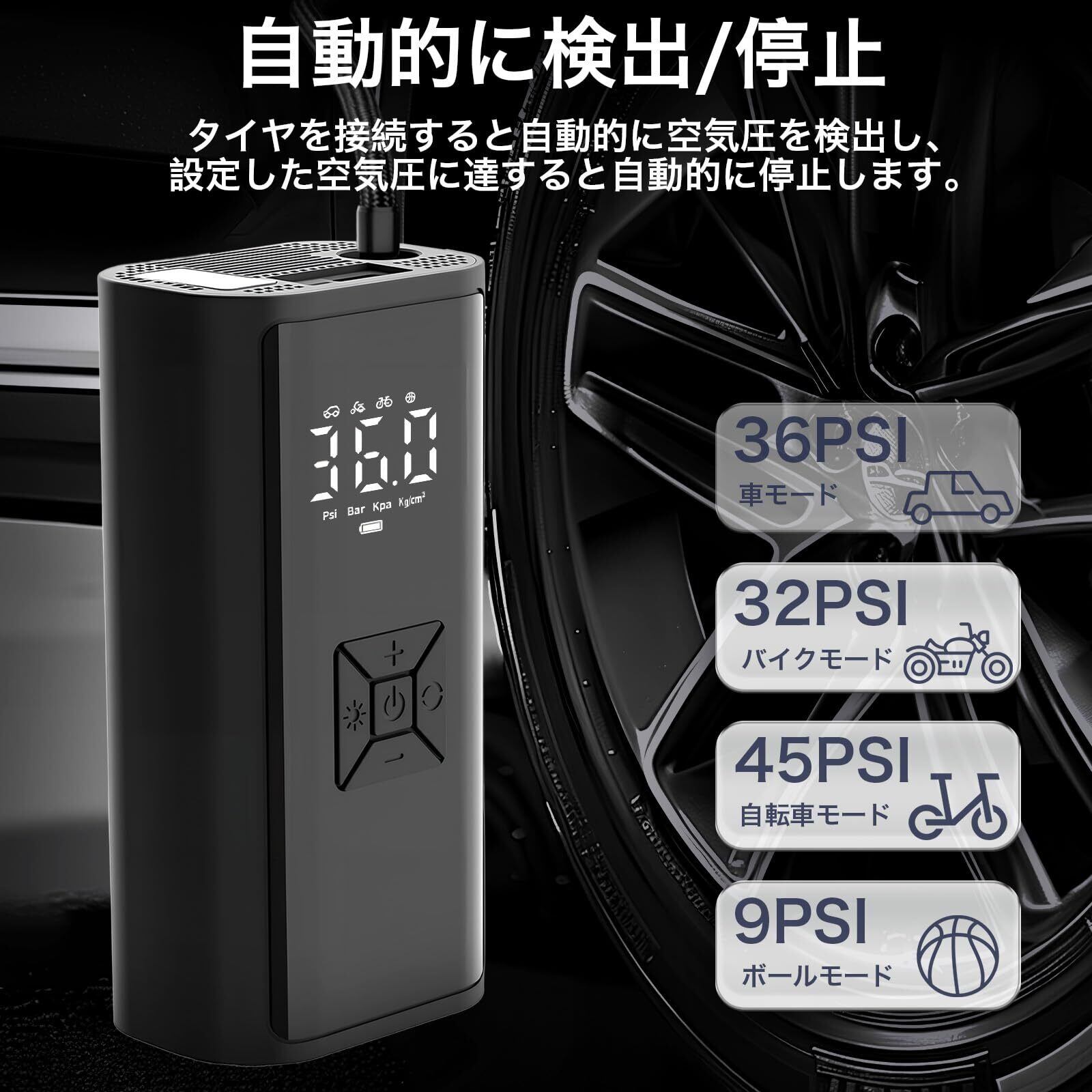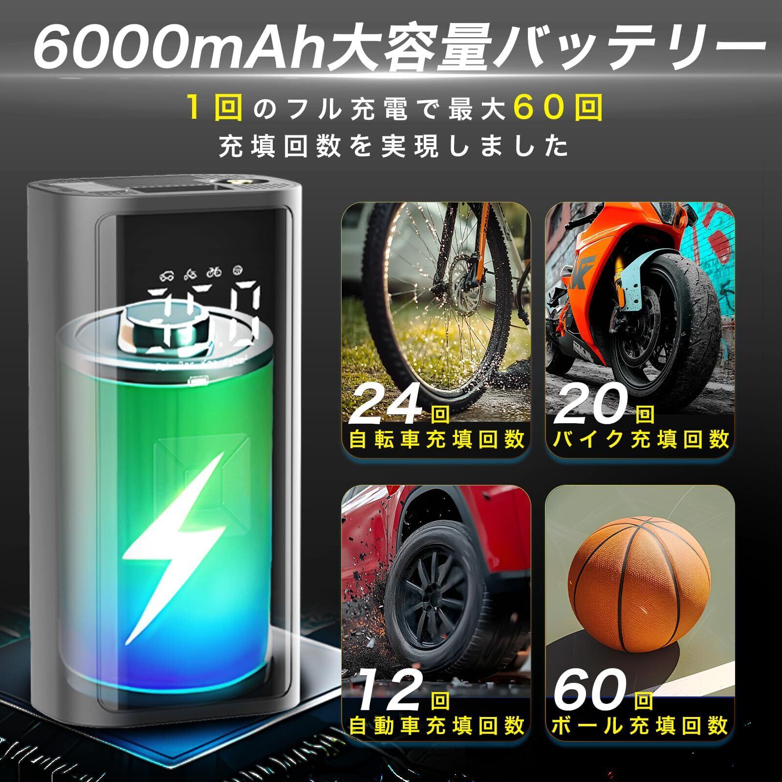 【特価セール】電動空気入れ コードレス 自動停止 最大圧力150PSI 自転車/自動車/バイク/ボール/浮き輪対応 6000mAh大容量バッテリー充電式 仏/米式バルブ対応 LCDデジタル表示 ライト&SOSモード付き