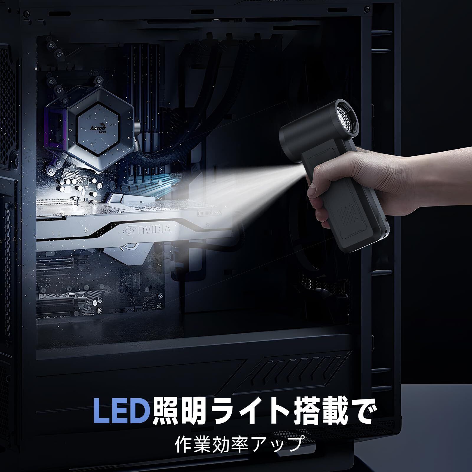 エアダスター ブロワー 電動エアダスター 電動ブロワー 洗車 230000RPM回転数 115m/s最大風速 5段階調整+強風モード 8000mAh大容量 Type-C充電式 【吹き飛ばしと吸引の2WAY機能】LEDライト付き キーボード/PC掃除/家具/車内/エアコン/洗車用 -[日本語取扱説明書付き]