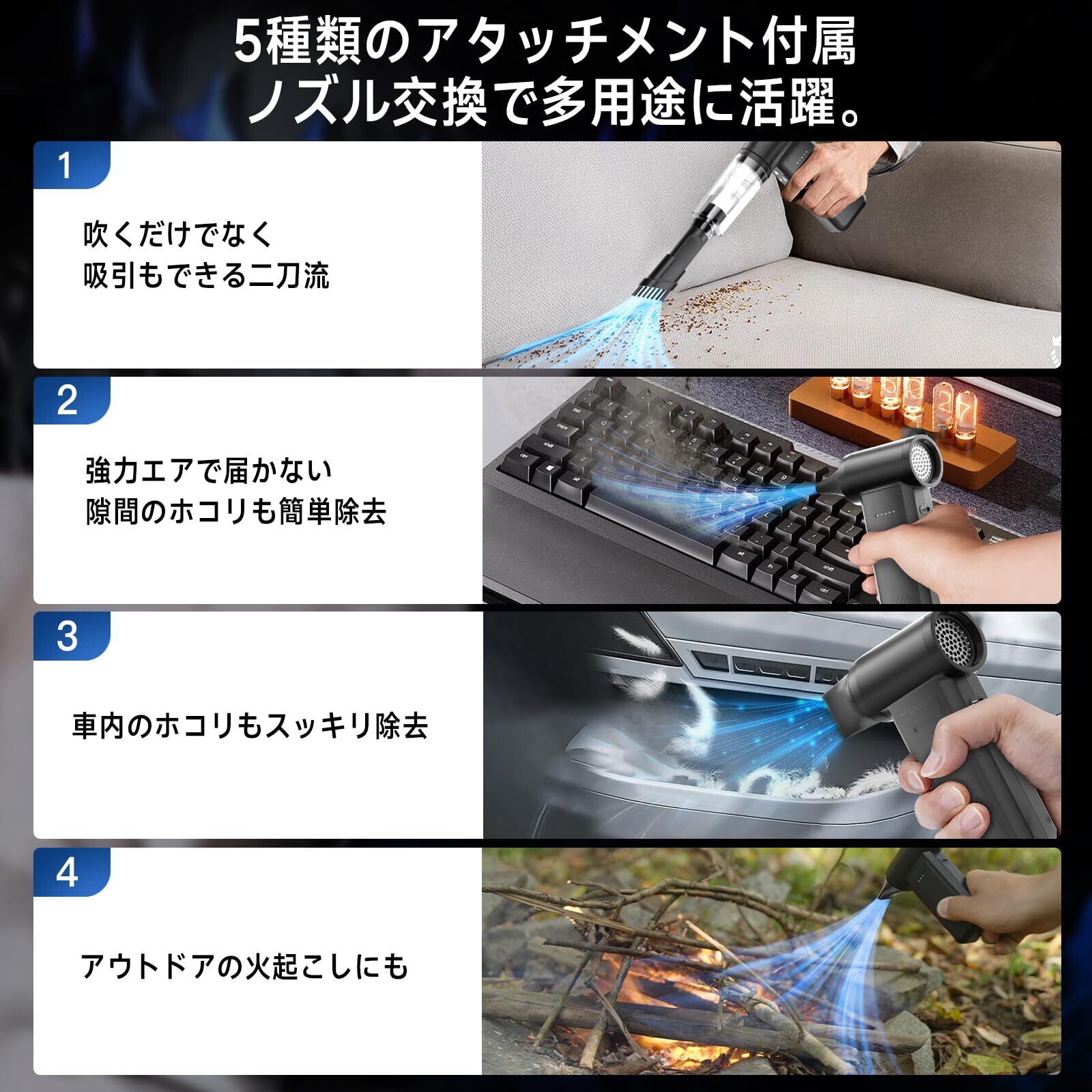 【数量限定】エアダスター ブロワー 電動エアダスター 電動ブロワー 洗車 230000RPM回転数 115m/s最大風速 5段階調整+強風モード 8000mAh大容量 Type-C充電式 【吹き飛ばしと吸引の2WAY機能】LEDライト付き キーボード/PC掃除/家具/車内/エアコン/洗車用 -[日本語取扱説明書付き]