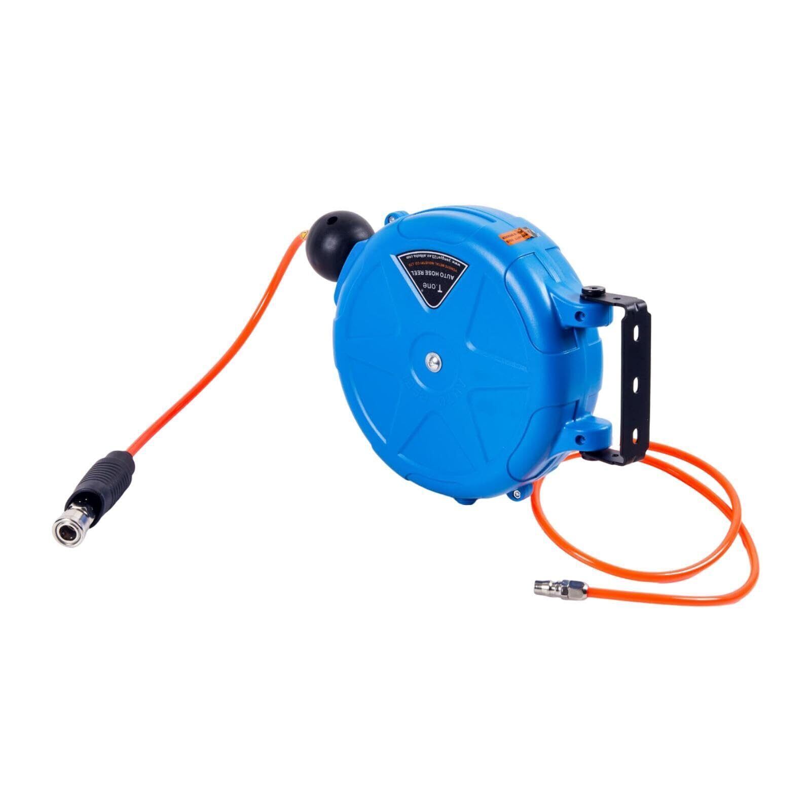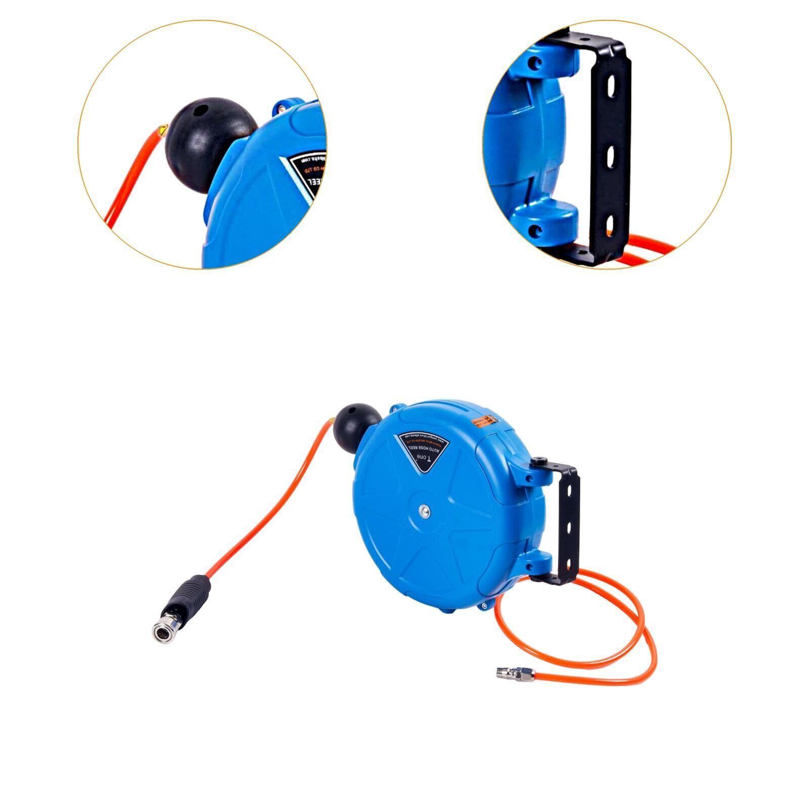 LOL-FUN 自動巻き取り式エアホースリール エアドラムホースリール 取り付け簡単アクセサリー 10mチューブ自動巻き取り ガレージガーデン用
