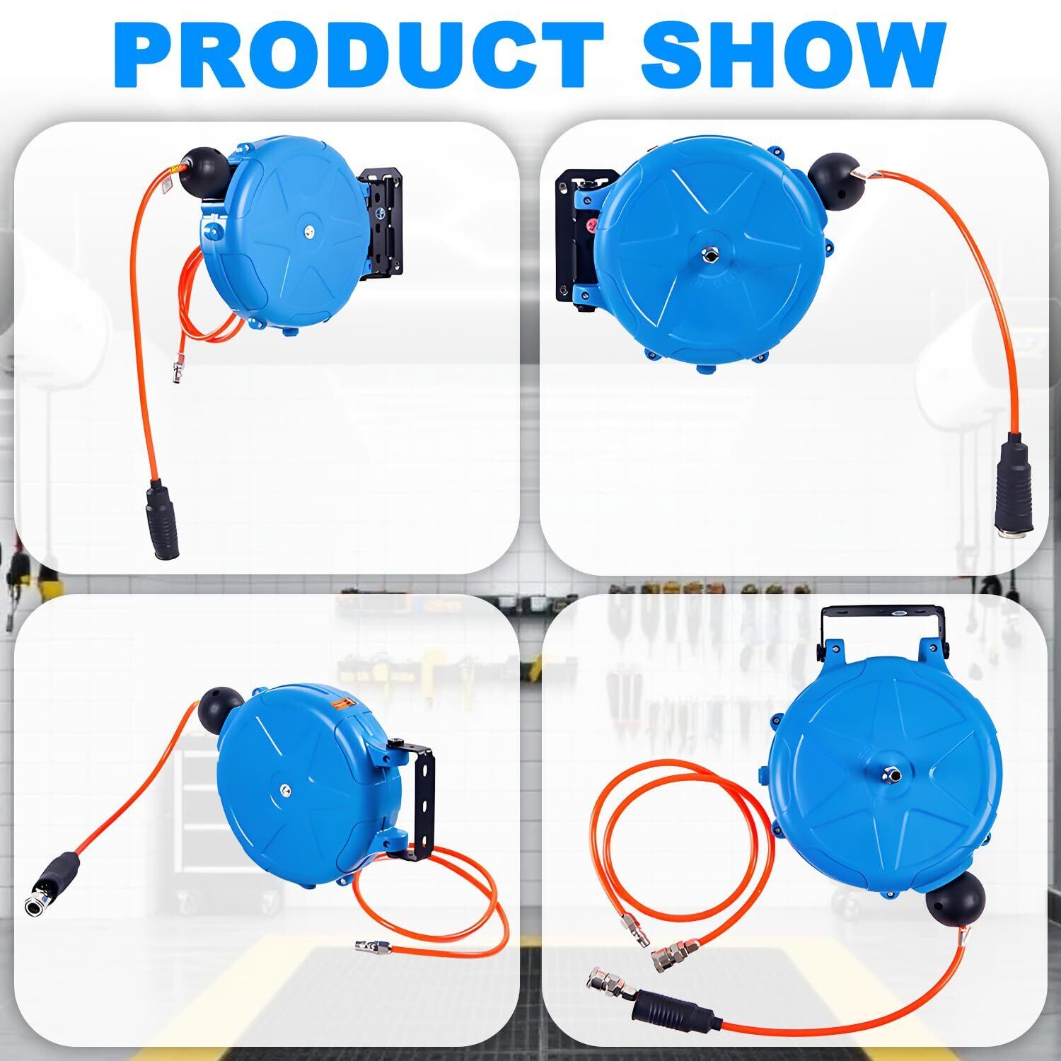 【幅広い用途】引き込み式の エアーホースリール と ホース は整理整頓が簡単で、ワークショップや家庭菜園、自動車修理工場、洗車場など多彩な環境に対応。空気工具との互換性が高く、作業効率と安全性を同時に向上させます。