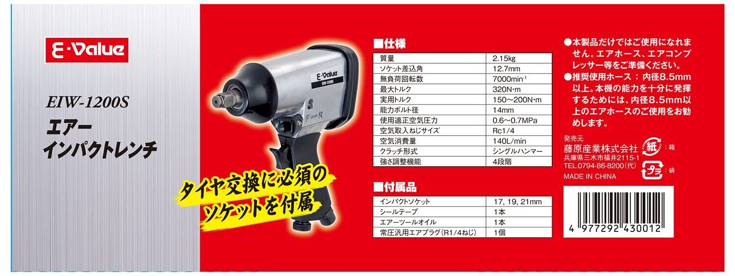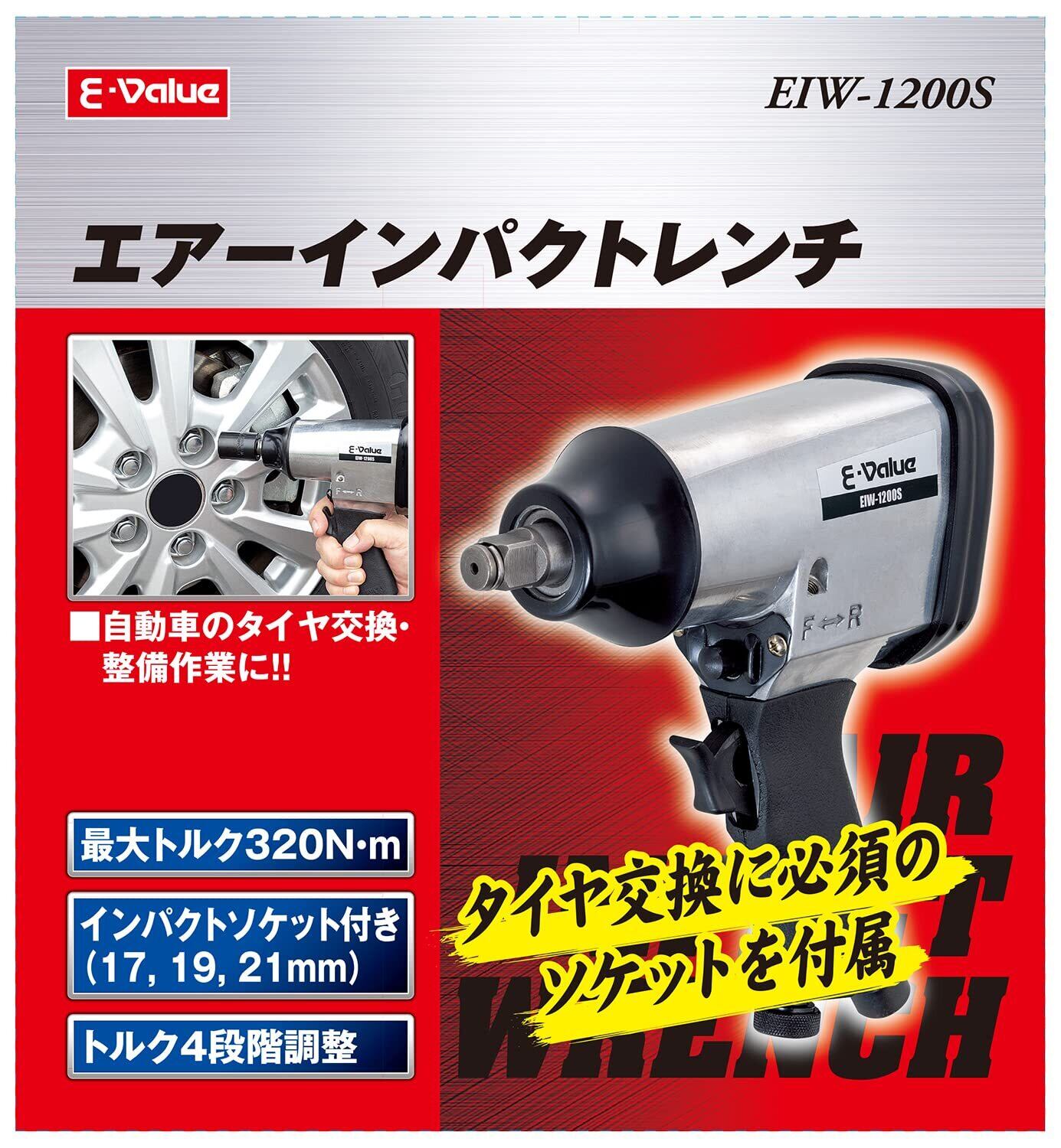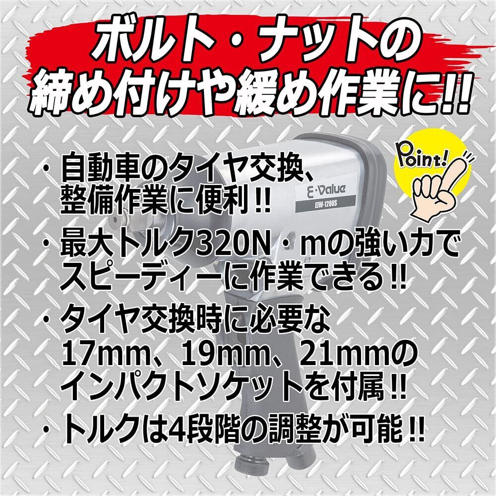 【2025最新】イーバリュー(E-Value) エアインパクトレンチ 差込角12.7mm 320N・m EIW-1200S シルバー