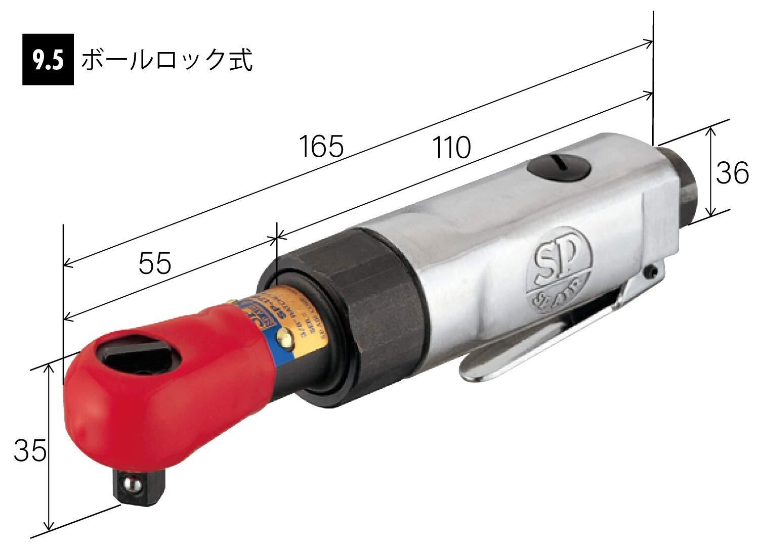エスピーエアー(SP) エアーラチェットレンチ(9.5㎜角) 締付トルク(N・m):20 SP-1762