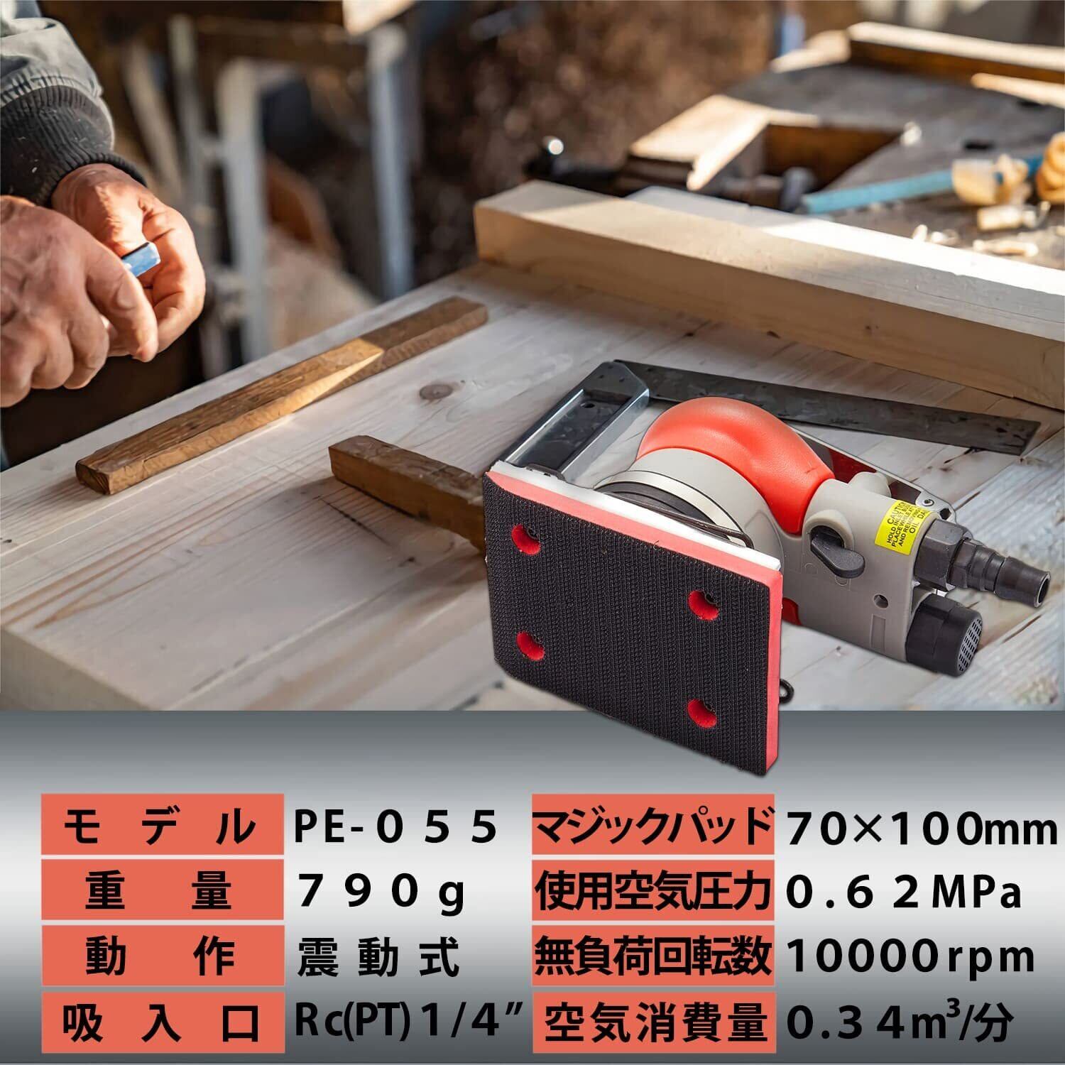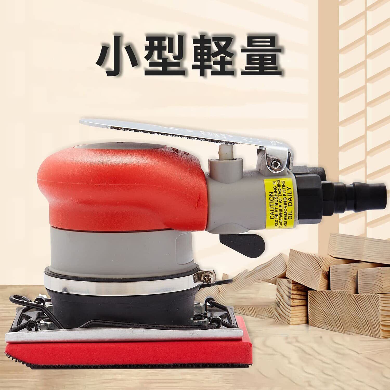 【製品特徴】本製品は同等能力の電動工具に比べて小型・軽量でパワーがあり、使いやすくて長時間作業も楽々OKです。 研磨スピードに優れ、作業効率も一段と向上します。樹脂製のハンドルなので、抜群の握り心地の特徴があります。エアコンプレッサーと接続し、圧縮空気を動力として、振動や回転などによって木材や金属の研磨、パテの研磨、塗装はがし、錆落としなどを行う空圧工具です。