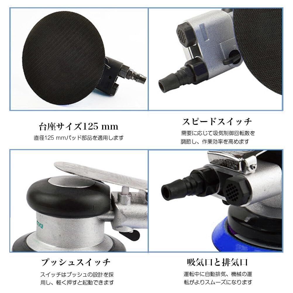 ポリッシャー エアーポリッシャー ダブルアクション エアーサンダー 車 小型 125 mm コード式 羊毛付き ランダム 車磨き 洗車 研磨 塗装 業務用 家庭用 ウールバフ3枚付き