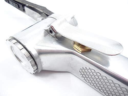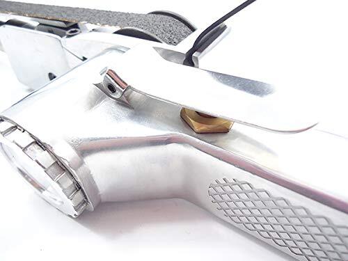■商品仕様:20mmタイプ■ ・・・ 全長:約350mm / 重量:約900g / 最大回転数:16,000RPM / 空気消費量:200L/min / ベルト幅:20mm×520mm / エアー差込口:1/4" / 角度調整機構付き / 付属品:替えベルト#80・#100・#120(3本)、エアーカプラー、L型レンチ