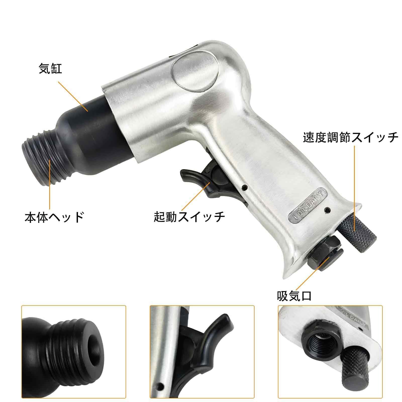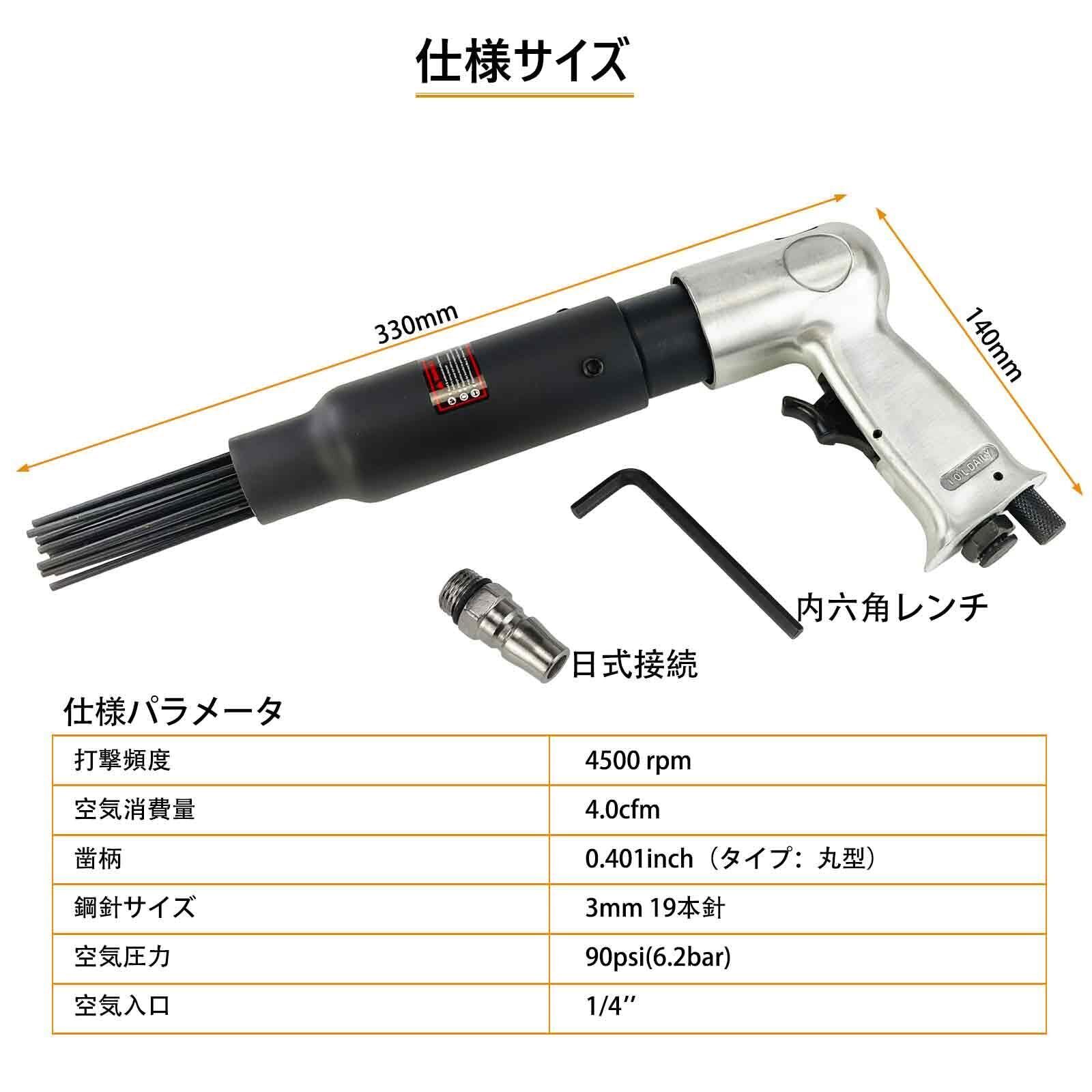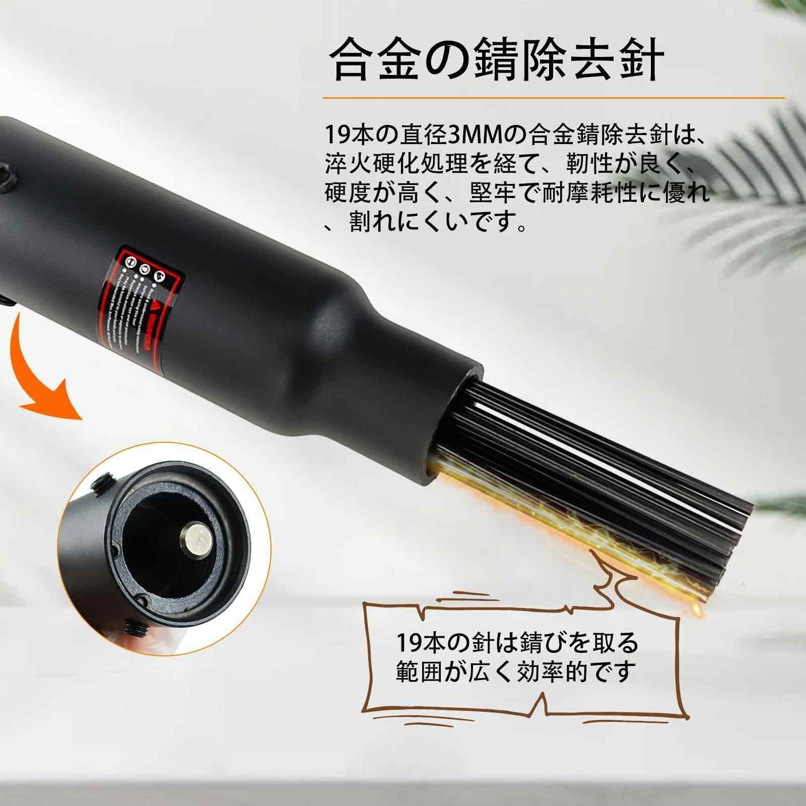 ニードルスケーラー 打撃数4500回/分 19本の硬化鋼針 ニードル直径約3mm 空気針スケーラ 錆・溶接スラッグ除去ツール