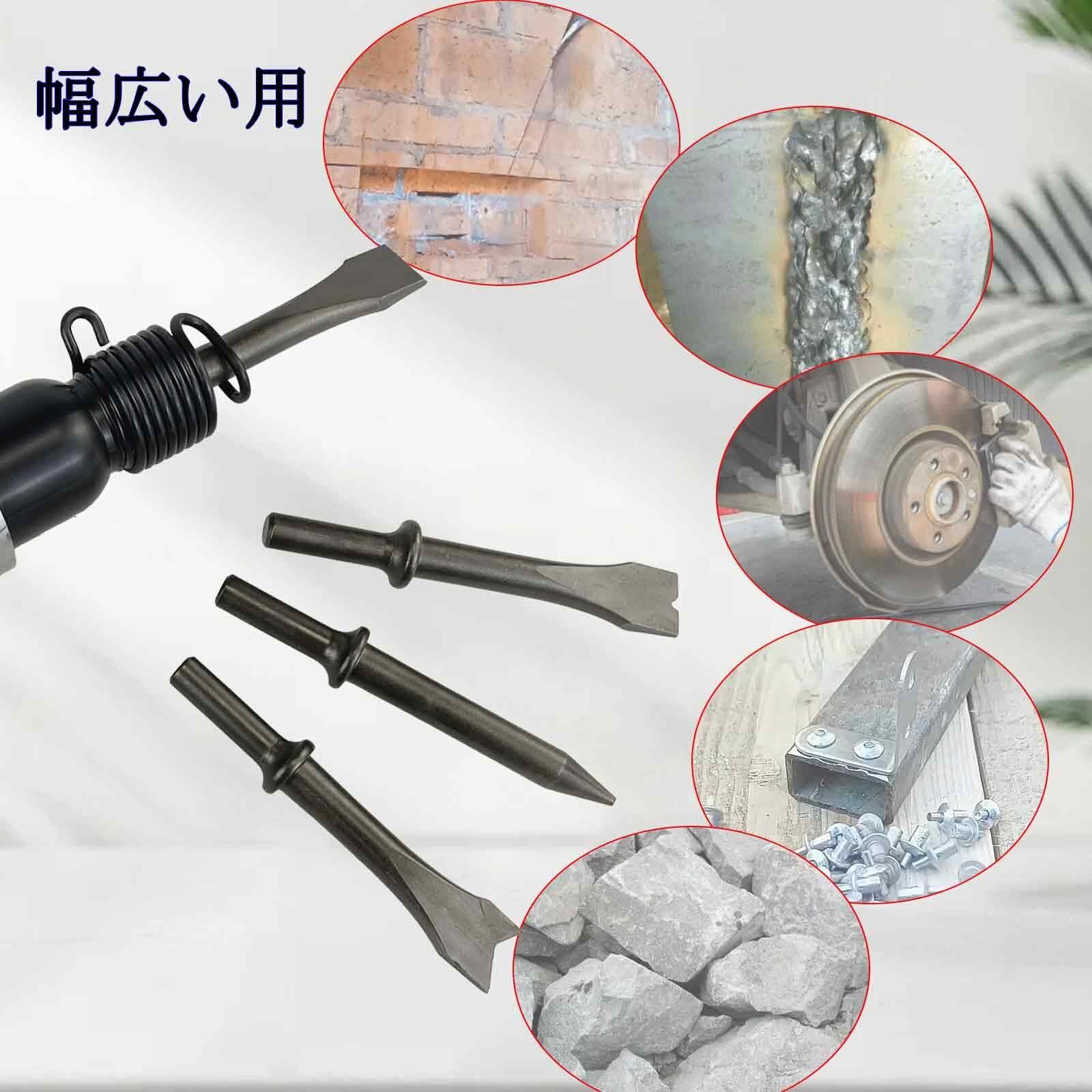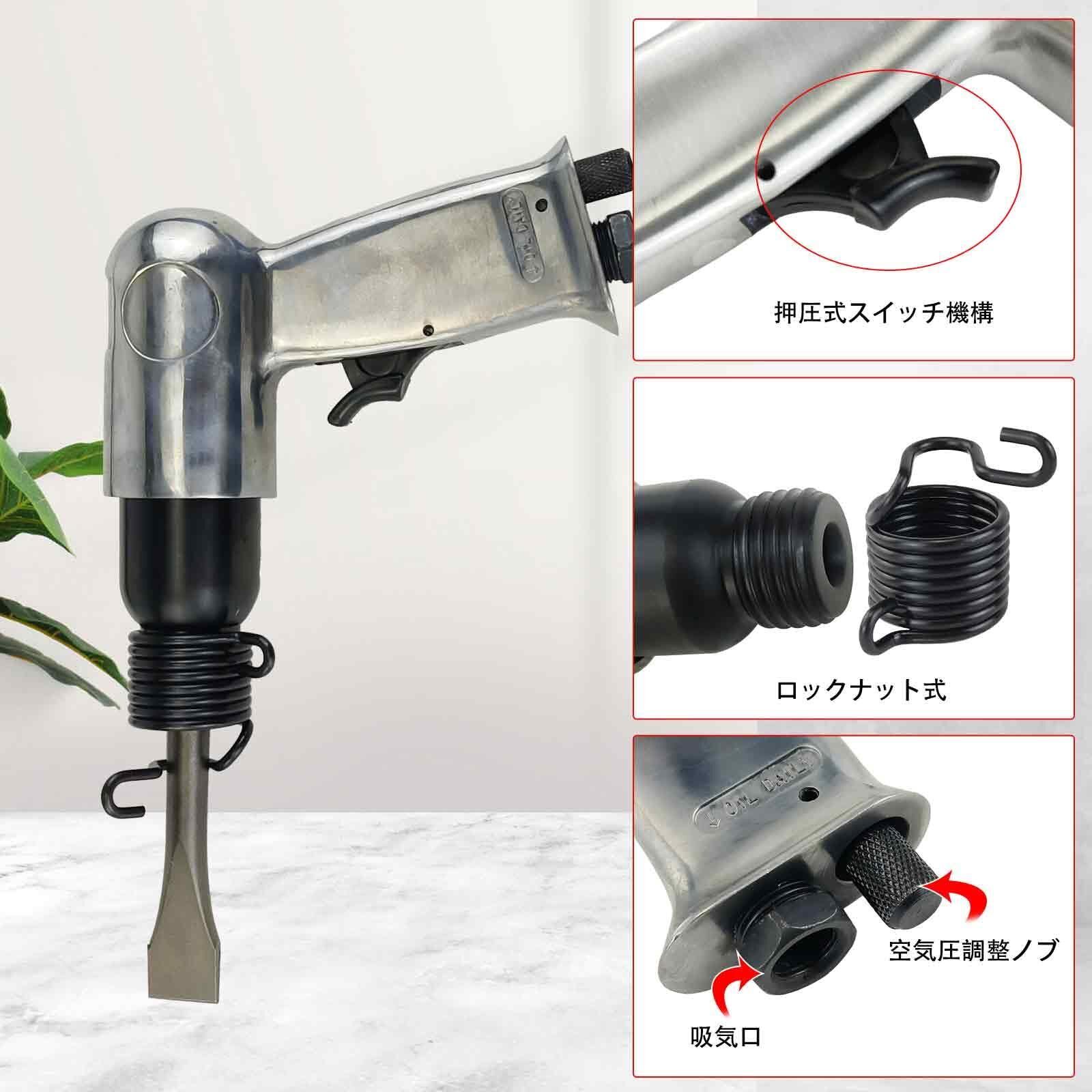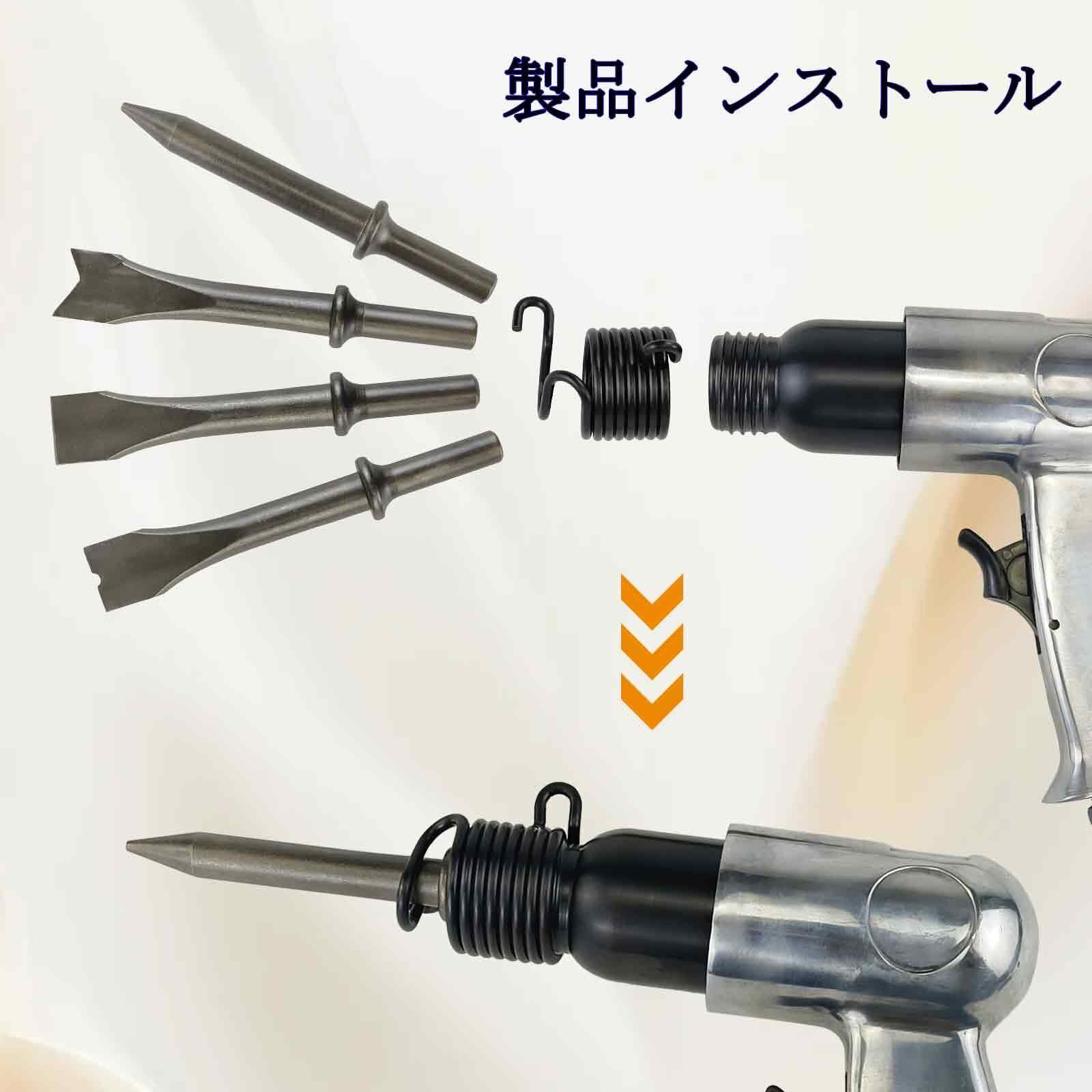 【2025最新】エアハンマーチゼルセット 150mmエアハンマー エアチゼル エアツール スプリングハンマー (チゼル4本付属)・毎分4500打撃・空圧式ハンマーショベル工具