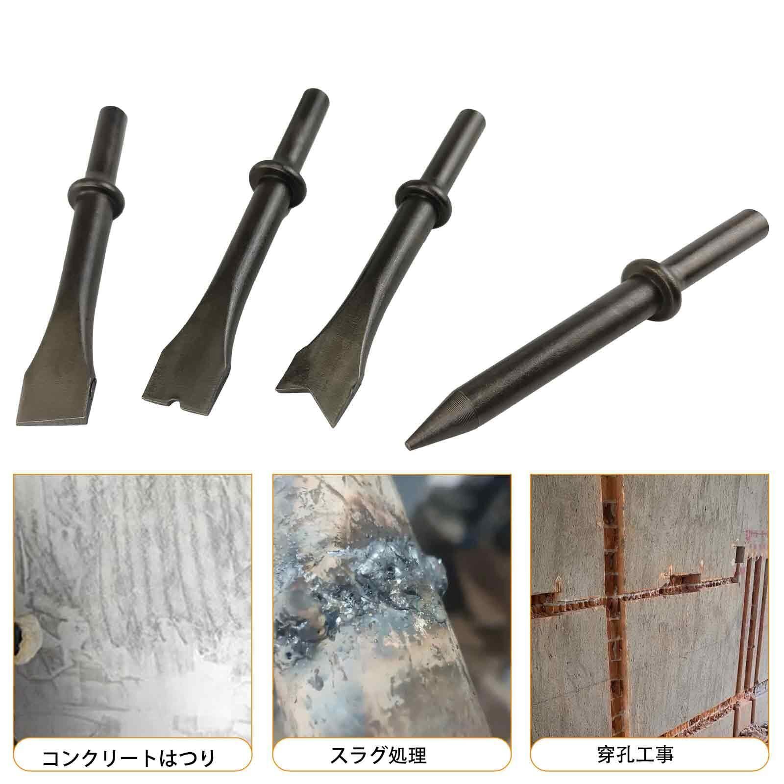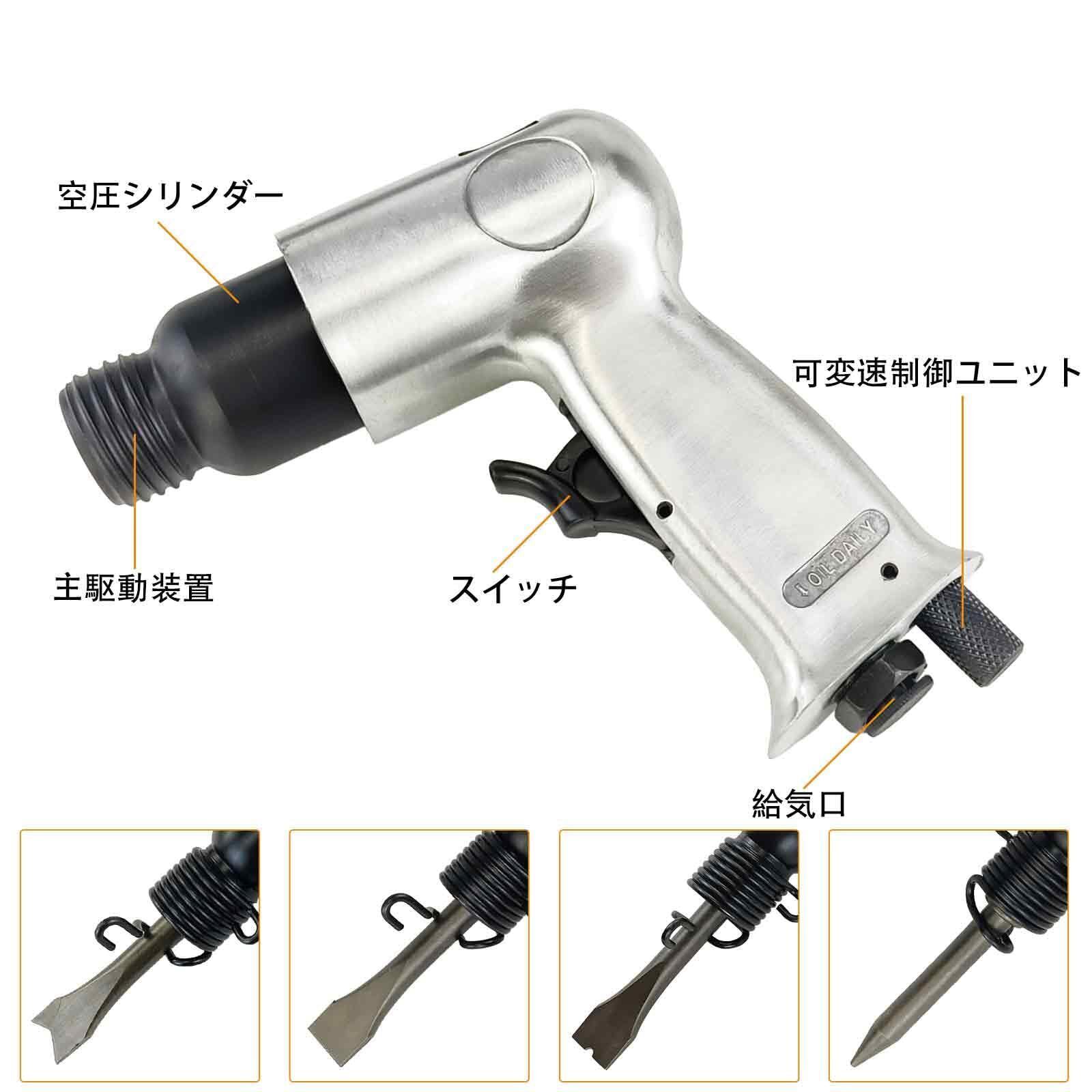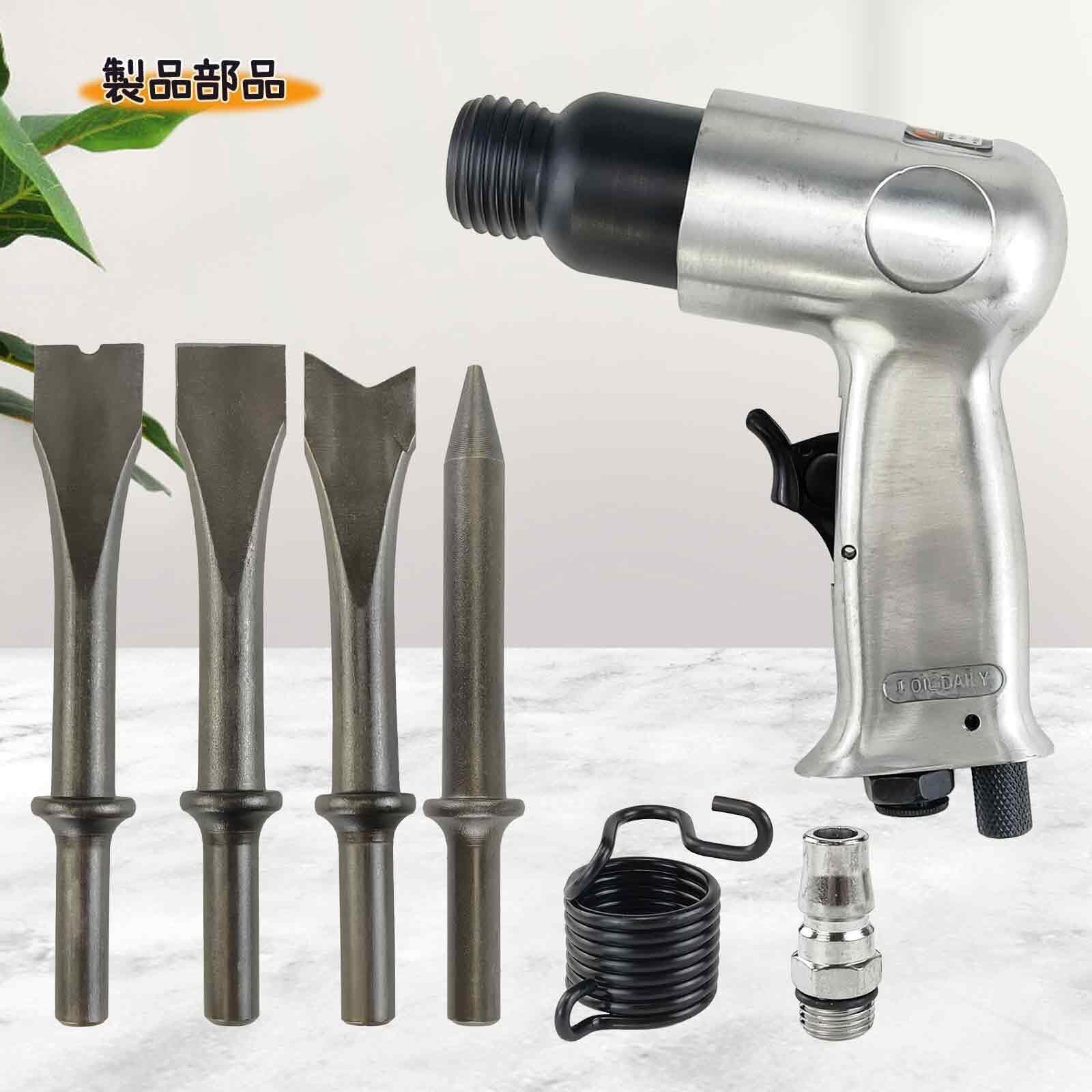 エアハンマーチゼルセット 150mmエアハンマー エアチゼル エアツール スプリングハンマー (チゼル4本付属)・毎分4500打撃・空圧式ハンマーショベル工具