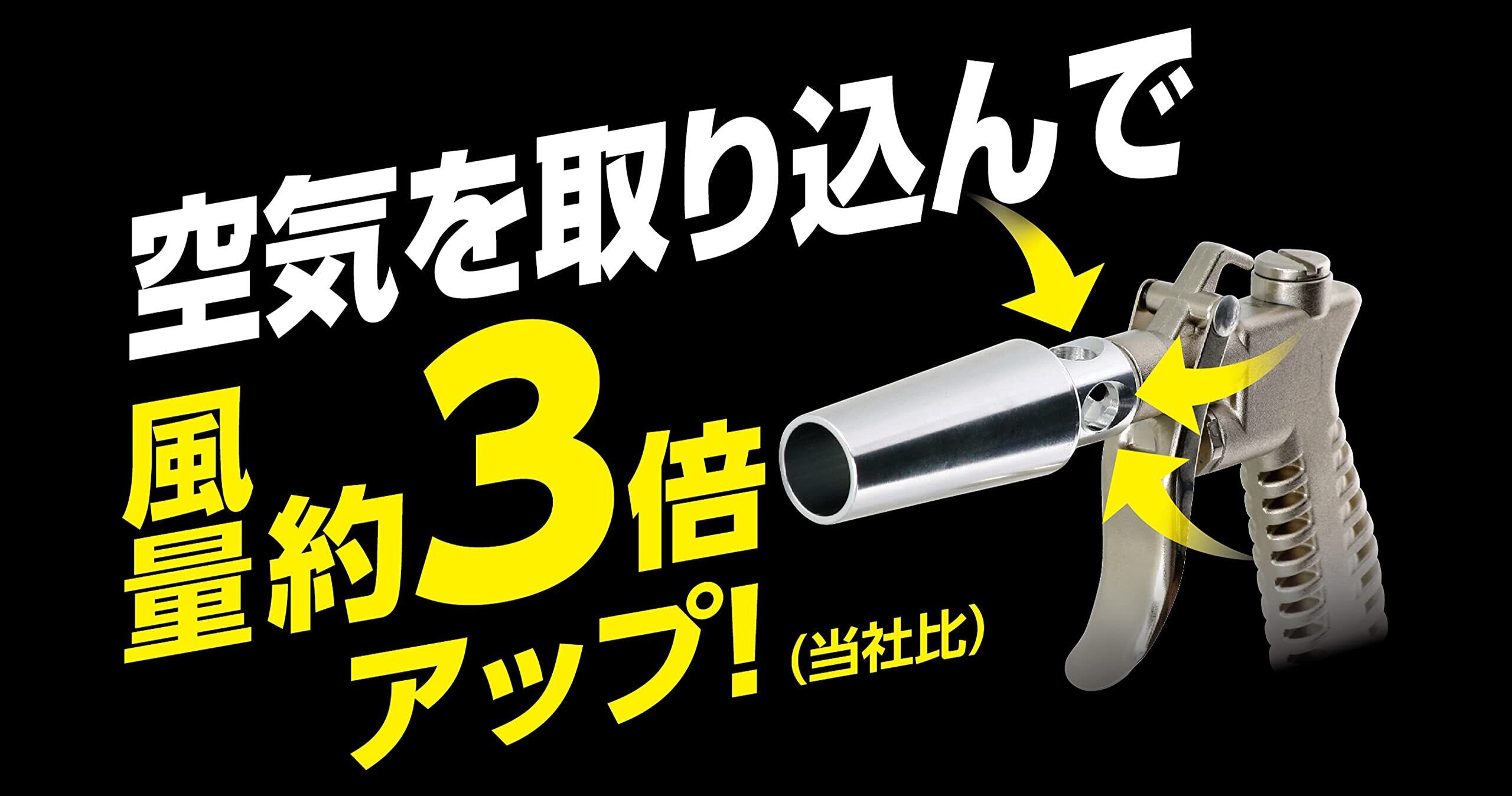 空気を取り込んで風量約3倍アップ(当社比)、高圧プラグ仕様 ※高圧パーツ(プラグ・ノズル取付け・ねじ等)の交換はできません。