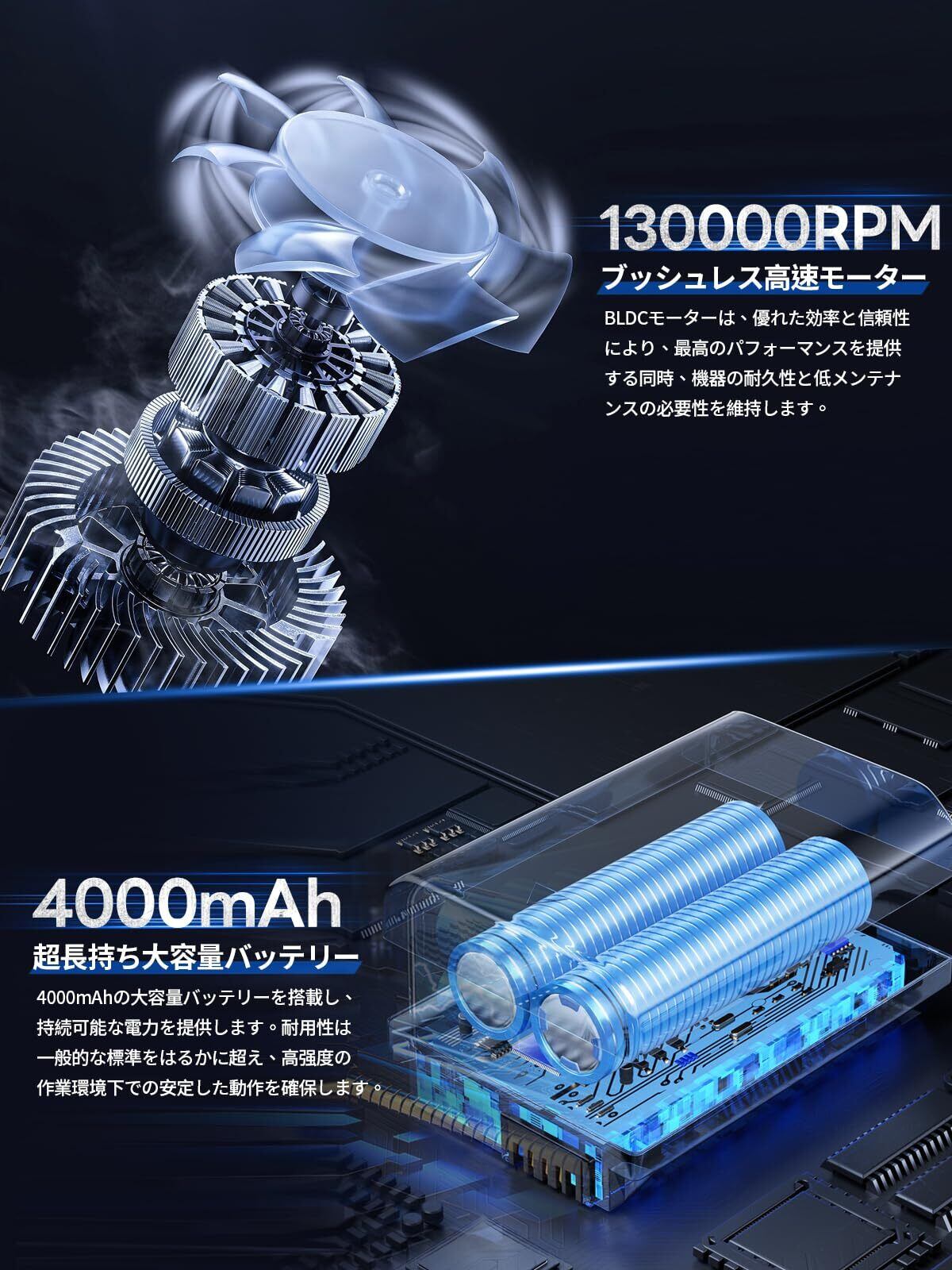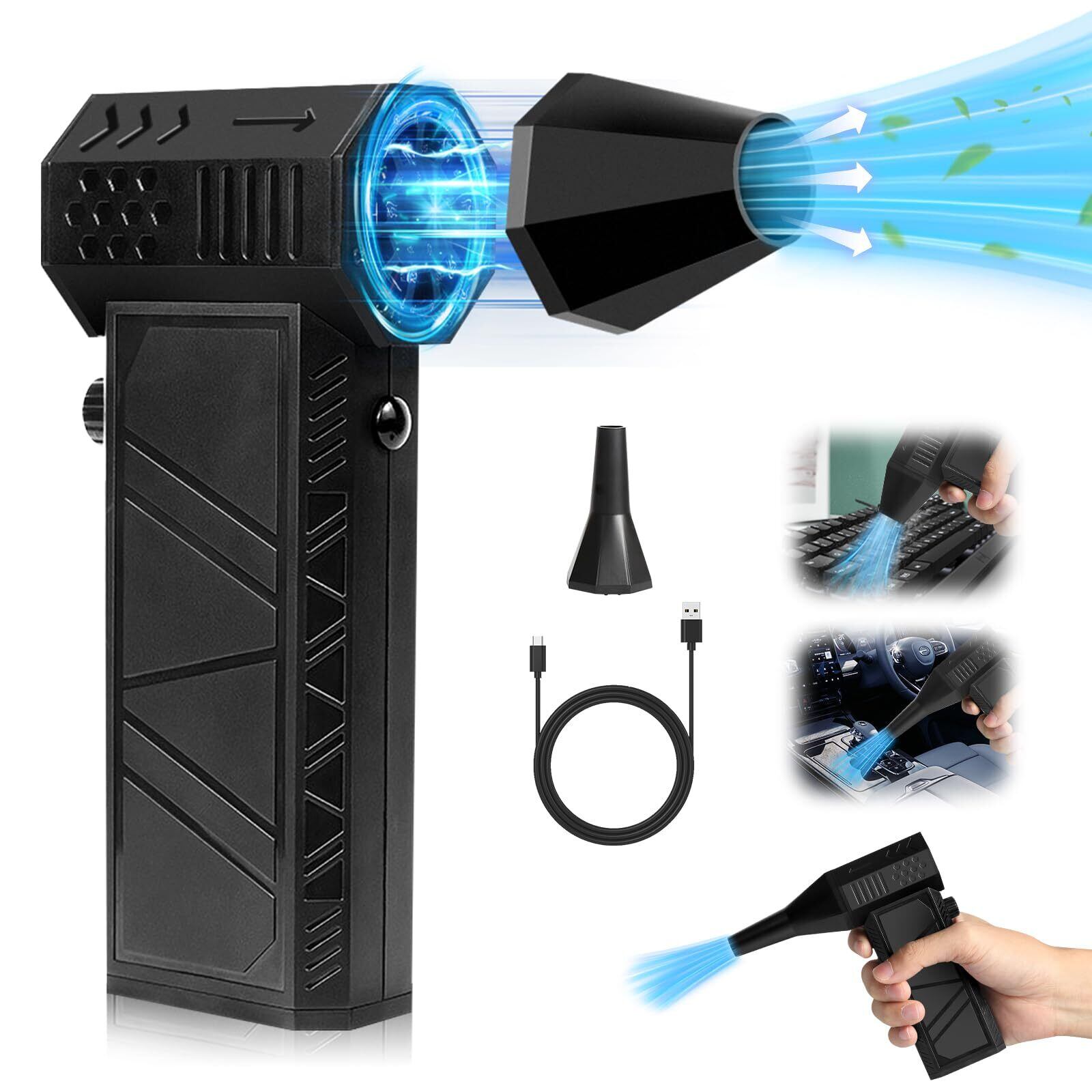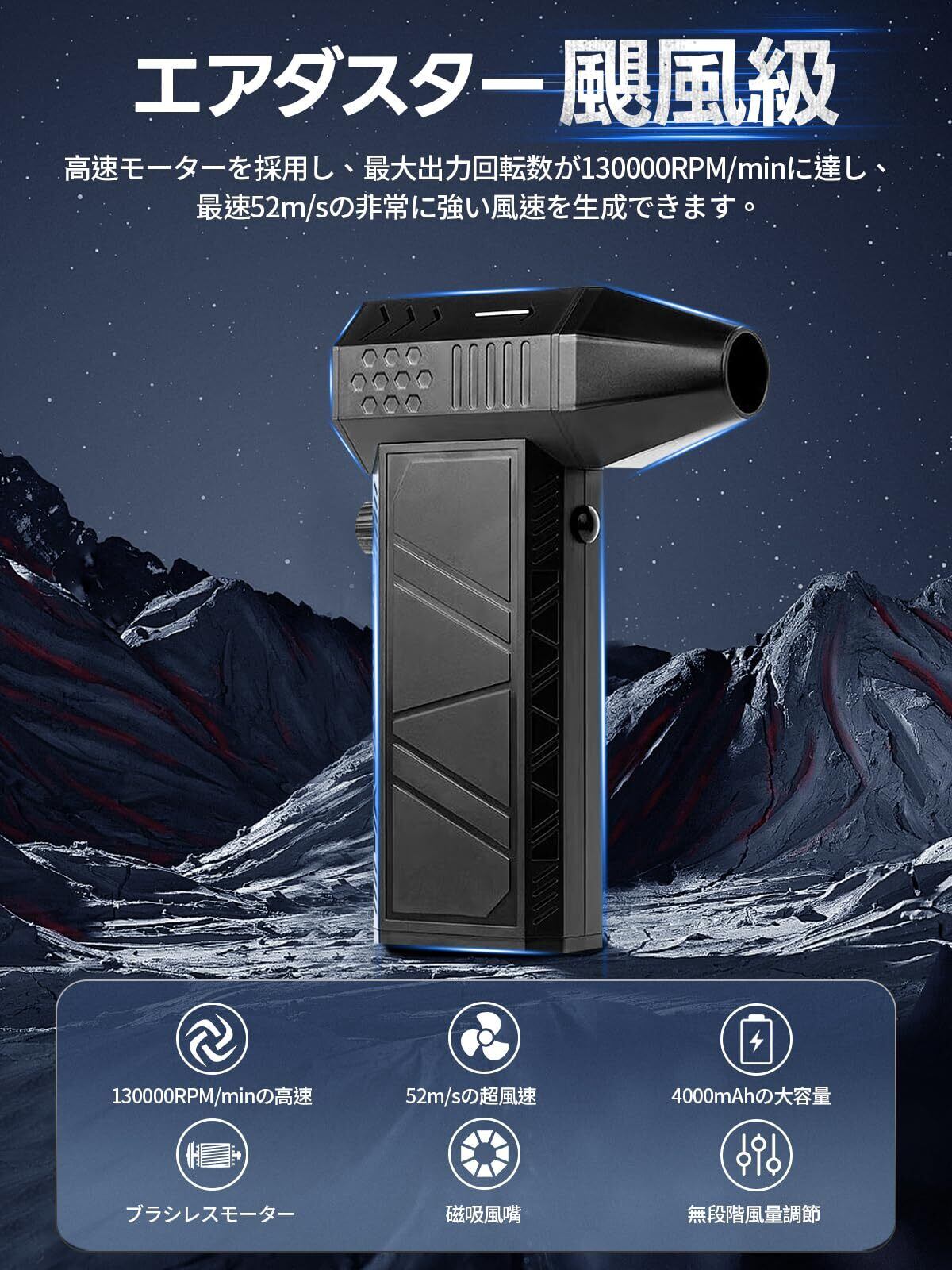 エアダスター ブロワー 洗車【2024昇級版52m/sの超風速】小型ブロワー 電動エアダスター 130000RPM 高速回転 ブロワー強力 小型エアーブロー 軽量 小型で強力 無段階風速調節 エアダスター 充電式 大容量バッテリ 長時間連続使用 Type-C充電 過熱保護 多用途 キーボード/PC掃除/バーベキュー/車内/網戸/エアコン/洗車用