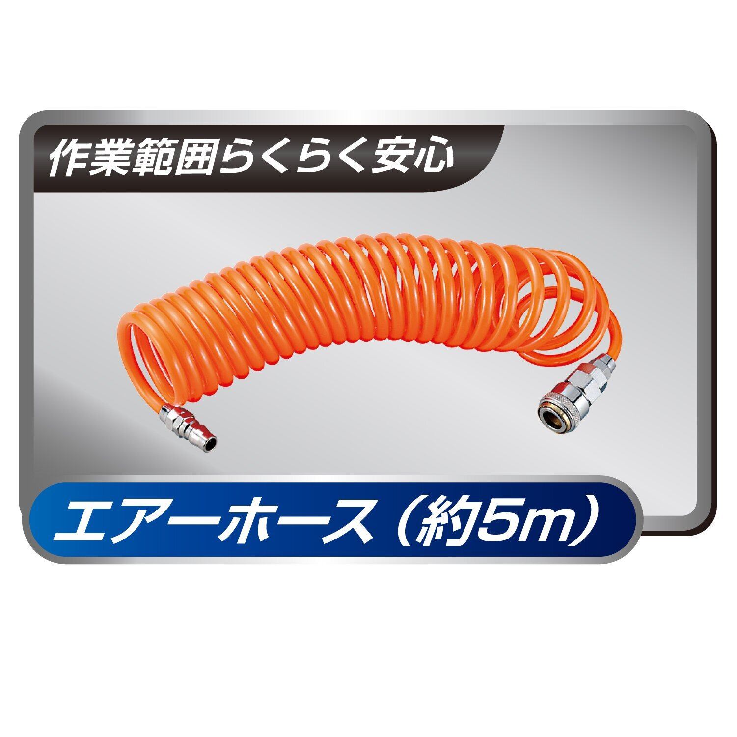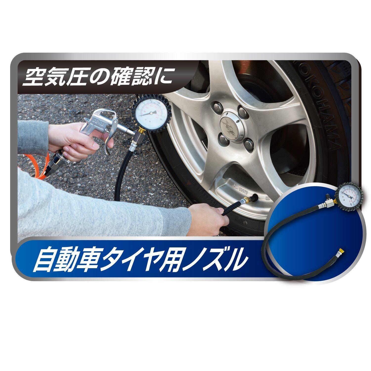 セット内容:自動車タイヤ用ノズル、エアーホース(約5m)、自転車タイヤ用ノズル、エアーダスター、ボール用ノズル、伸縮ノズル、ゴムボート用ノズル