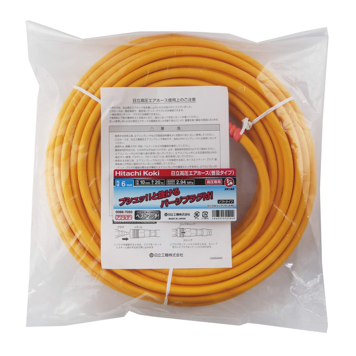 【在庫限り】HiKOKI(ハイコーキ) 高圧エアホース(ロックキャップソケット) 20m 普及タイプ 内径6mm パージプラグ付 0088-7050