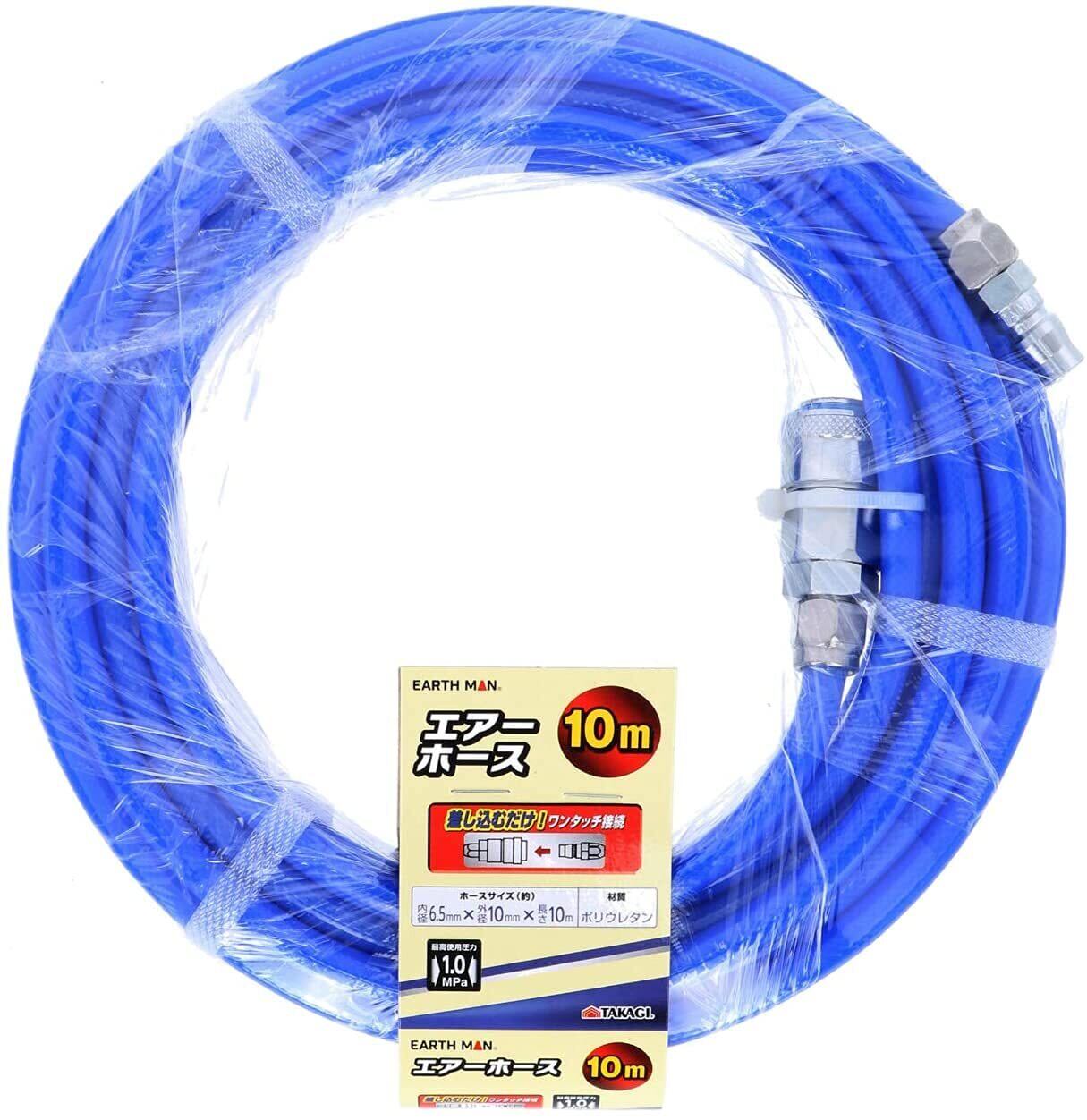 高儀(Takagi) EARTH MAN エアーホース ポリウレタン 差し込むだけのワンタッチ接続 使用最高圧力:1.0MPa 青 10m