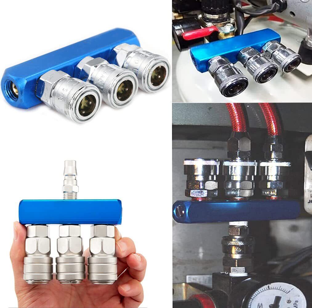 YFFSFDC エアーカプラー ソケット 3連 分岐 ワンタッチ型 接続 ソケット 汎用 エアコンプレッサー カプラー