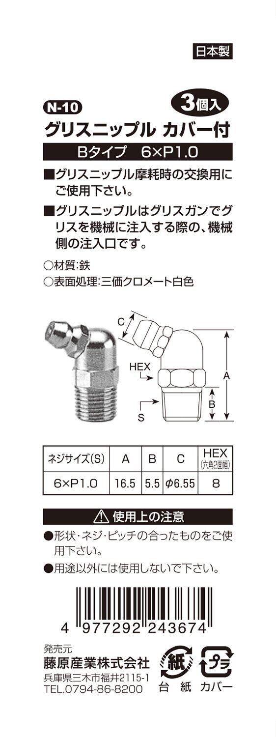 SK11(エスケー11) グリスニップル 3個入 MT6 P1.0 B型 N-10