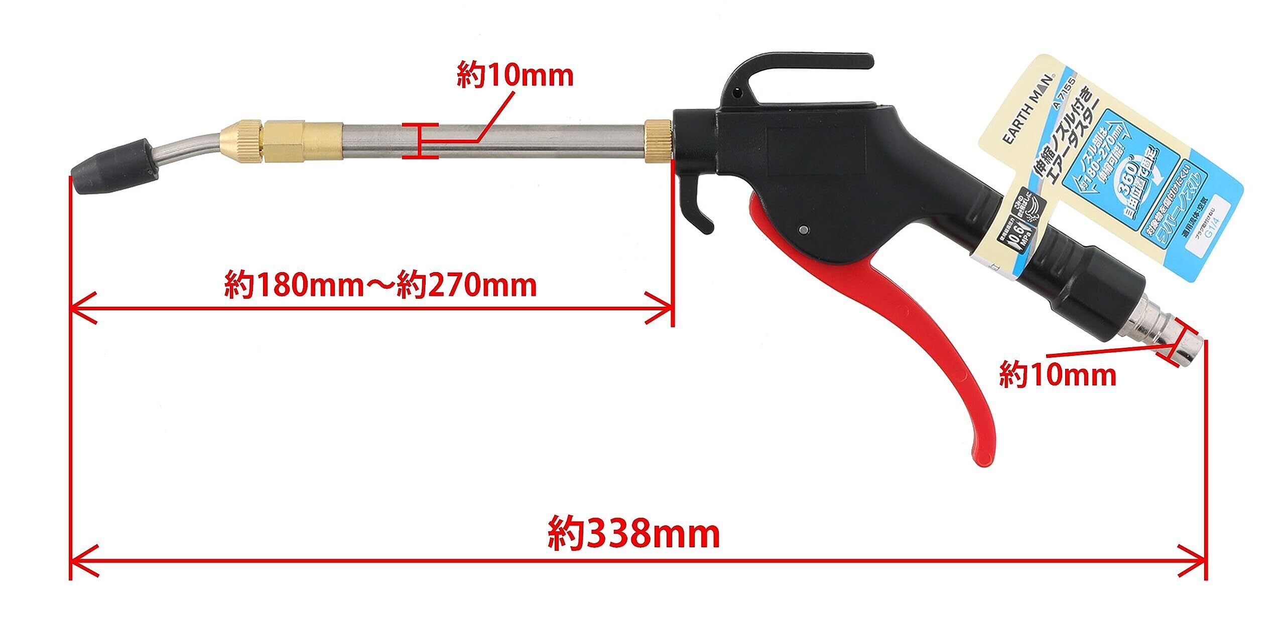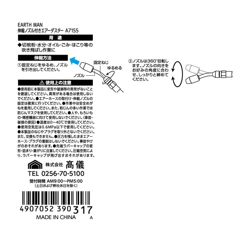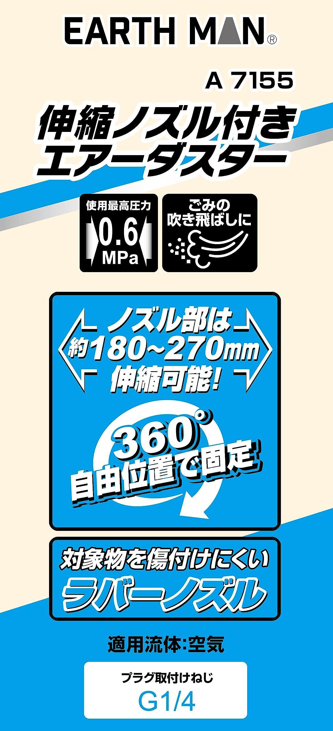 高儀(Takagi) EARTH MAN 伸縮 ノズル付き エアーダスター 軽量 エアーコンプレッサー 使用最高圧力0.6Mpa ごみの吹き飛ばしに ノズル部は約180~270mm伸縮可能 360°自由位置で固定 対象物を傷付けにくいラバーノズル A7155