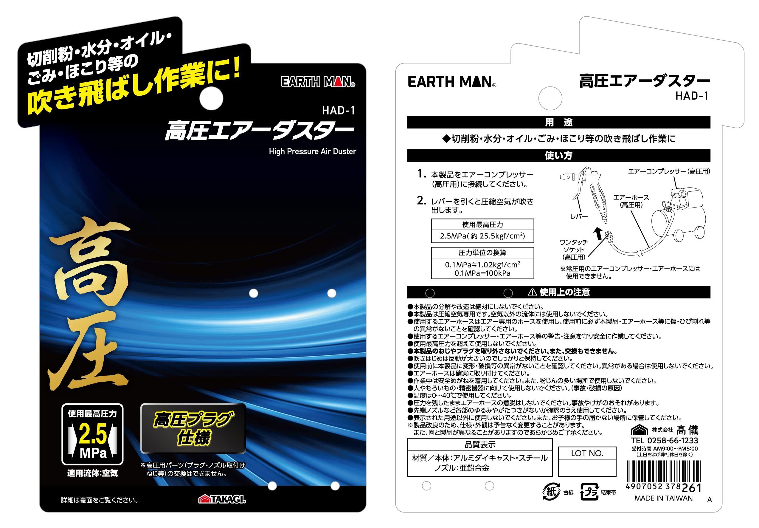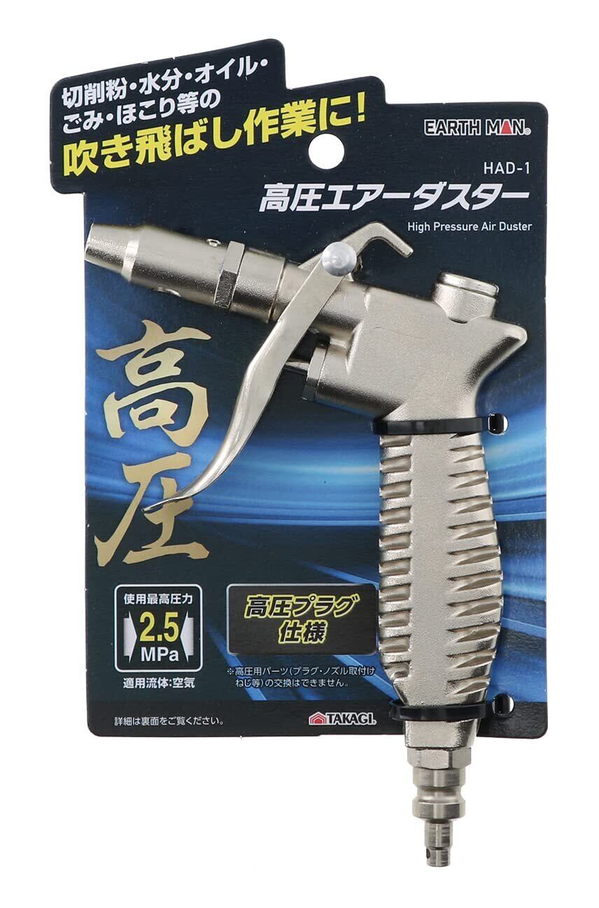 髙儀(Takagi) EARTH MAN エアーダスター 高圧 エアーダスター シルバー 2.1×10.5 15.5 cm ほこり等の吹き飛ばし作業に 高圧プラグ仕様 使用最高圧力:2.5MPa HAD-1