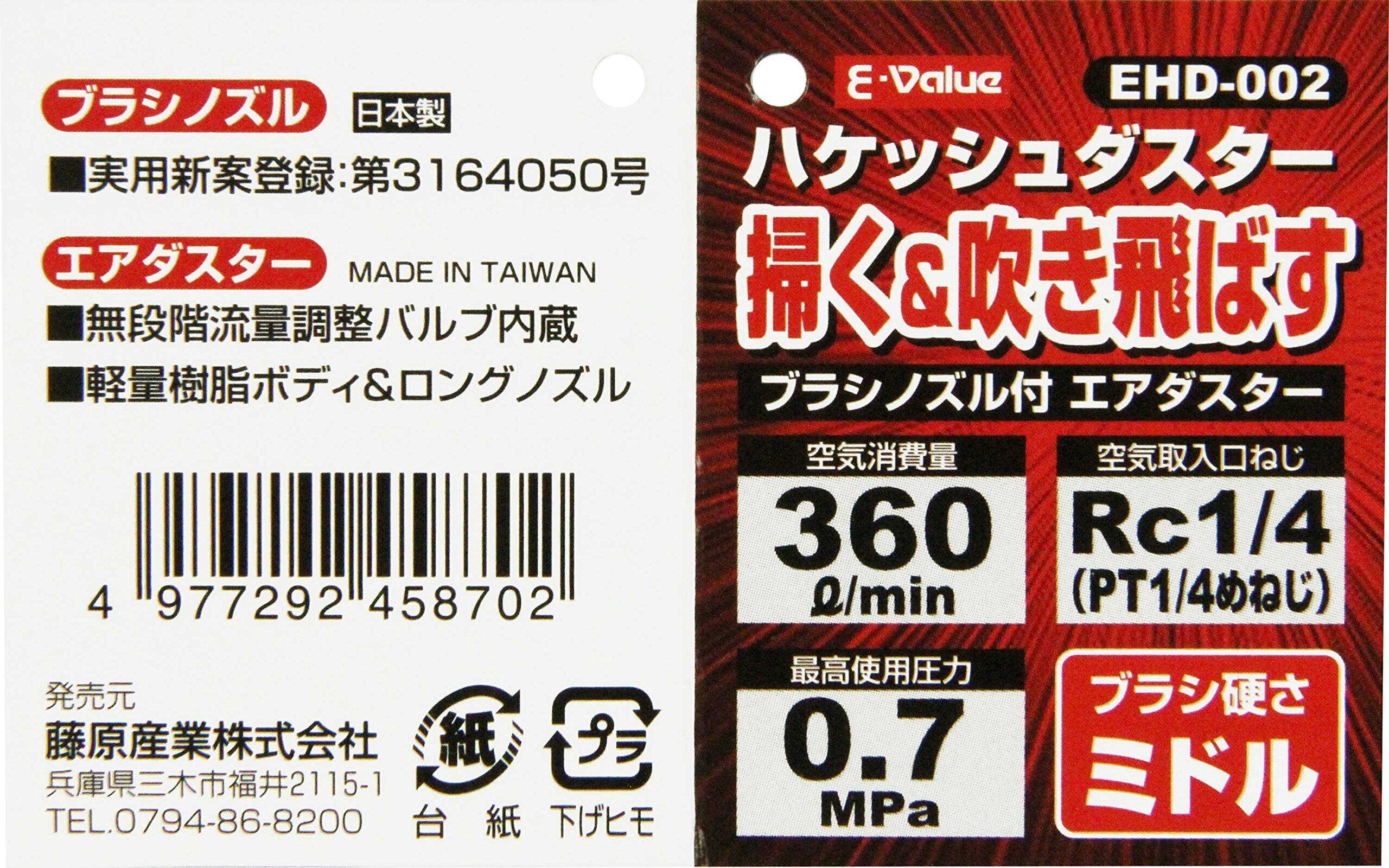 イーバリュー(E-Value) ハケッシュダスター ブラシノズル付エアダスター ミドル EHD-002