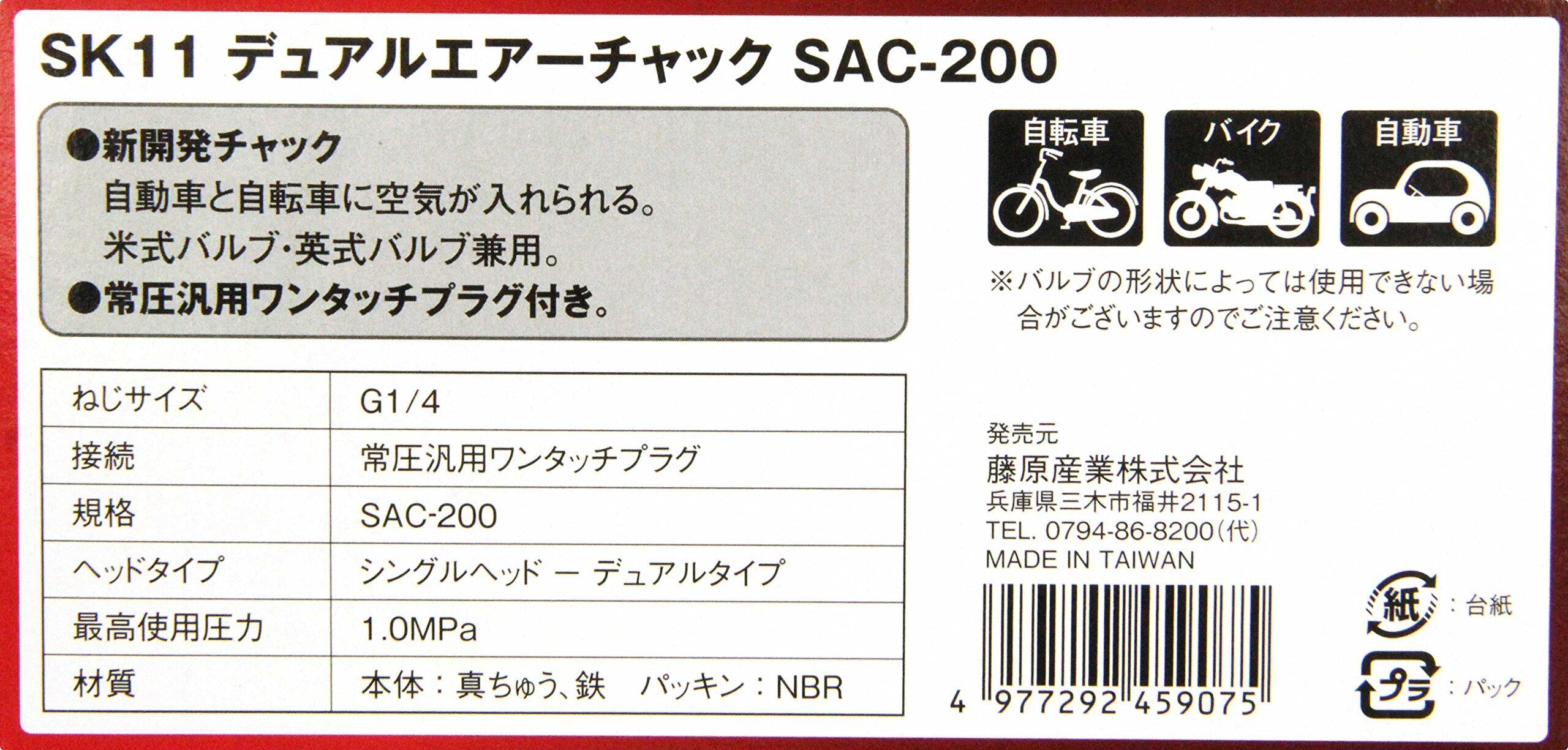 【在庫限り】SK11(エスケー11) デュアルエアーチャック 自転車 自動車兼用 DXS SAC-200