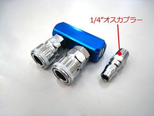 1箇所からエアーが2つ取り出せる2連分岐エアカプラーです。