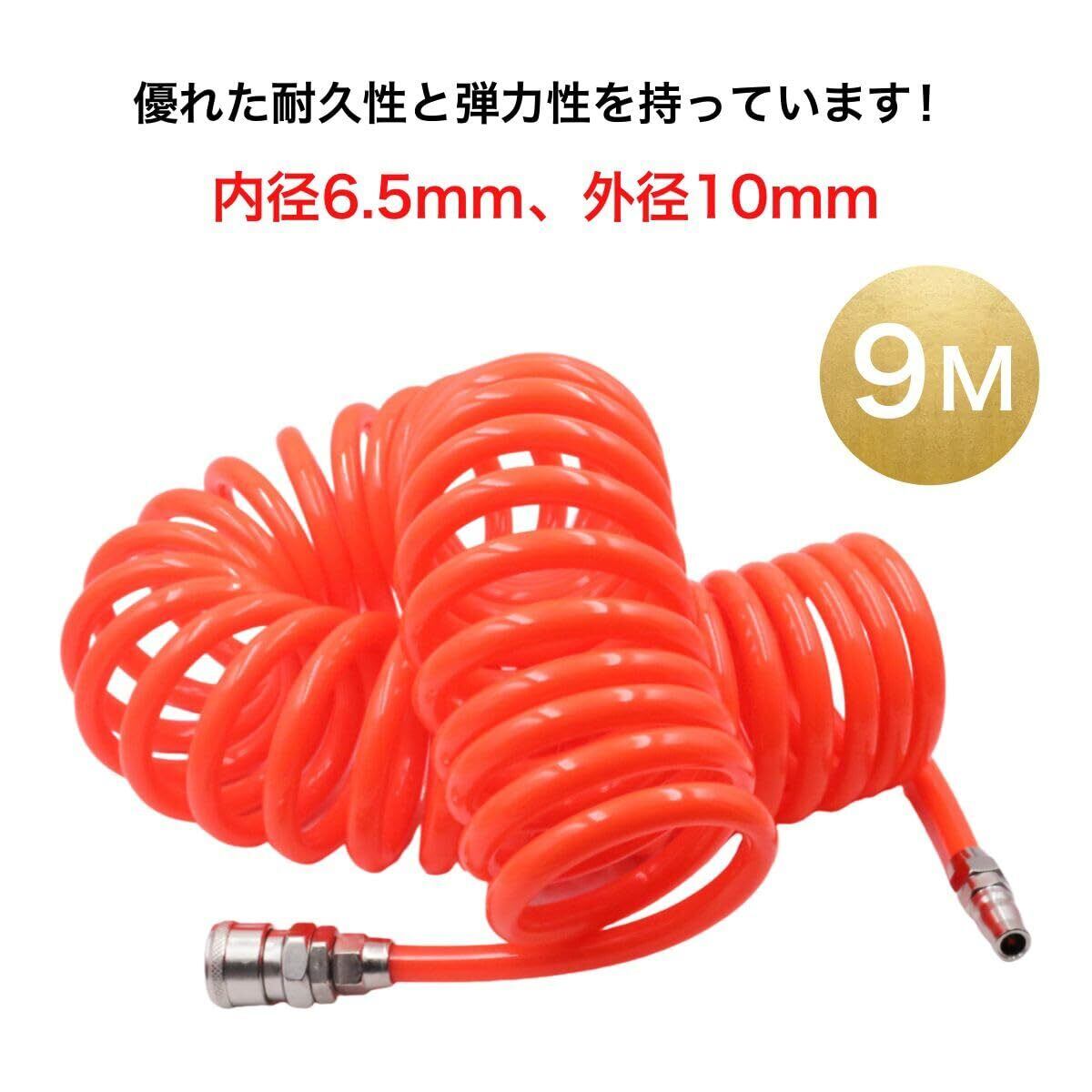 エアーホース スパイラルバネ式 3M 内径6.5mm 外径10mm 空気圧ツール用 スクリューホース コンプレッサー対応 (3M)
