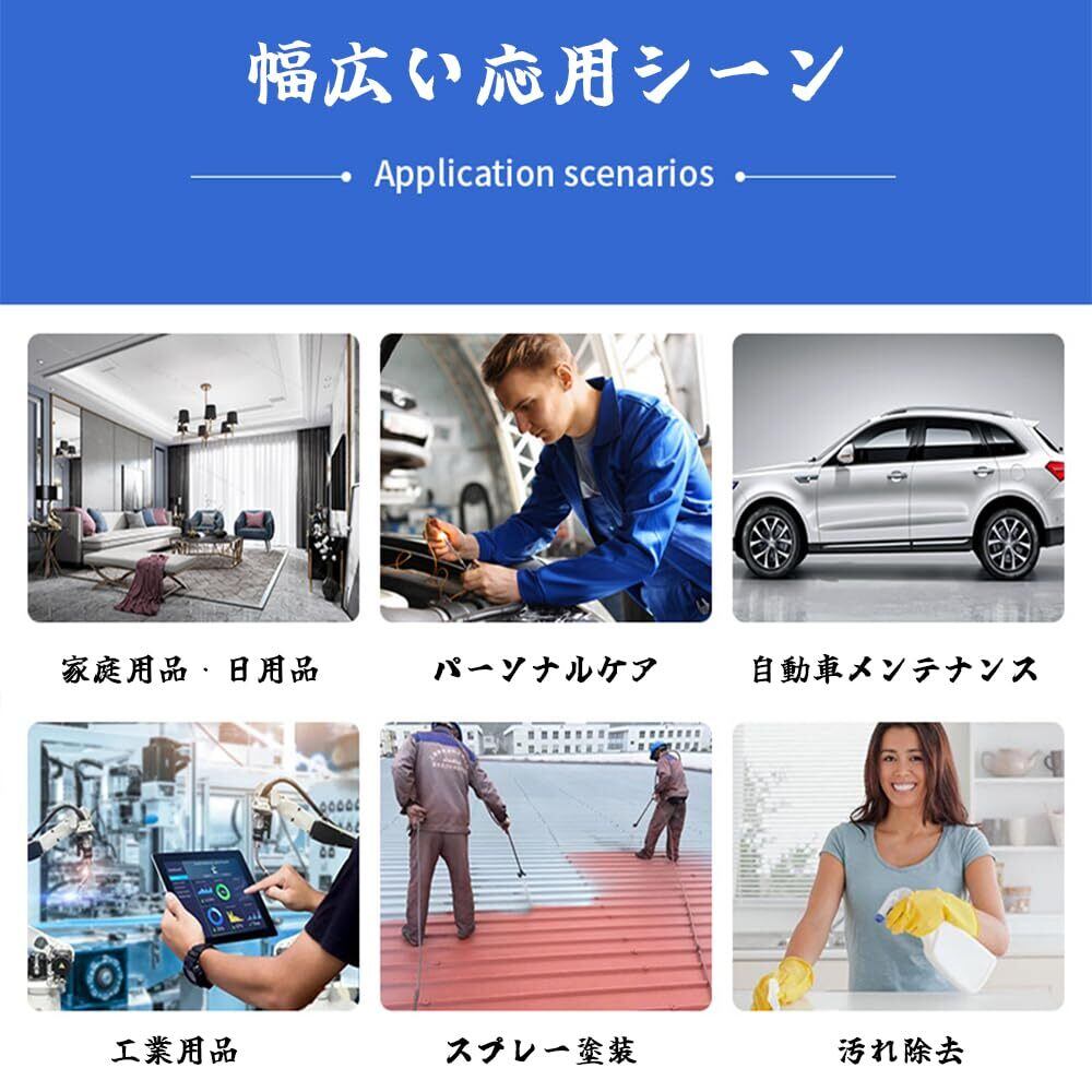 3. 【幅広い使用シーン】エアコン清掃や壁・天井の塗装など、エアゾール缶やスプレー缶での作業に最適です。正確かつ均一に塗布でき、様々な場面で活躍します。