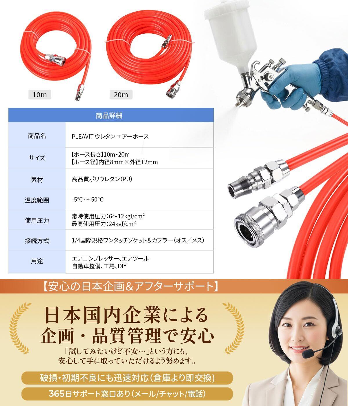 【特別価格】PLEAVIT ウレタン エアーホース 内径8mm 外径12mm カプラ 付き エアブラシ (20m)