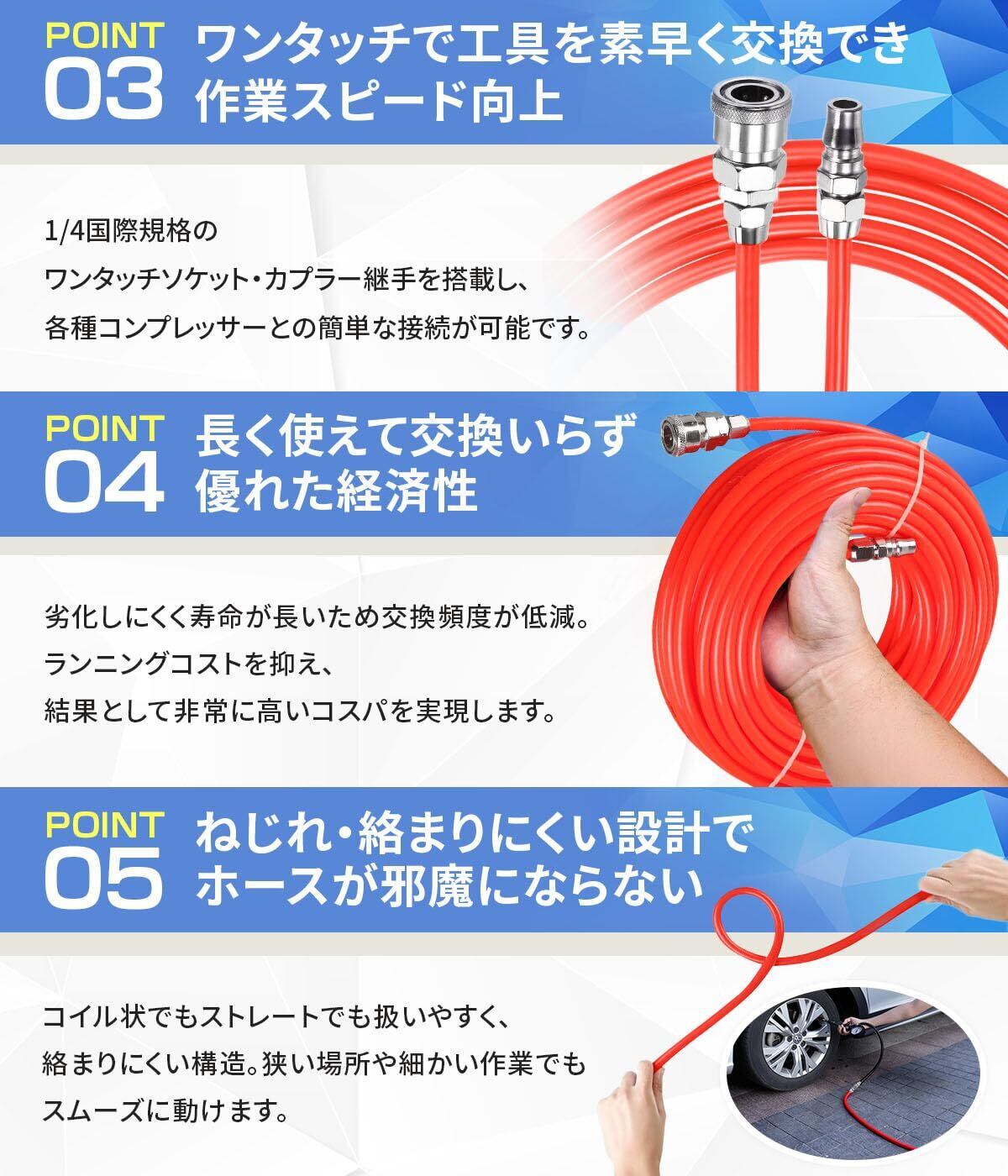 ■ホースの両端にオス/メスのワンタッチソケット・カプラー付きで簡単に脱着可能。あらゆる種類のコンプレッサー、エアツール、圧縮ポンプ、空気圧システムなどに適しています。