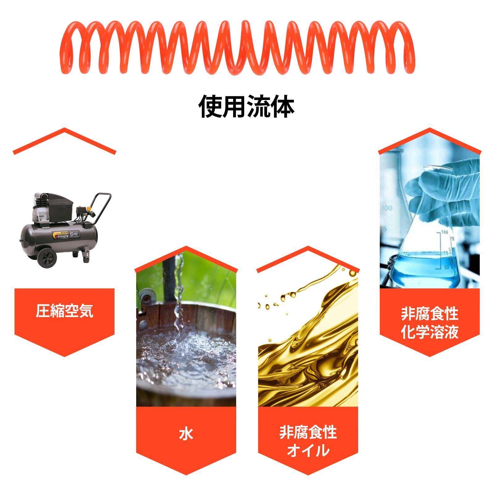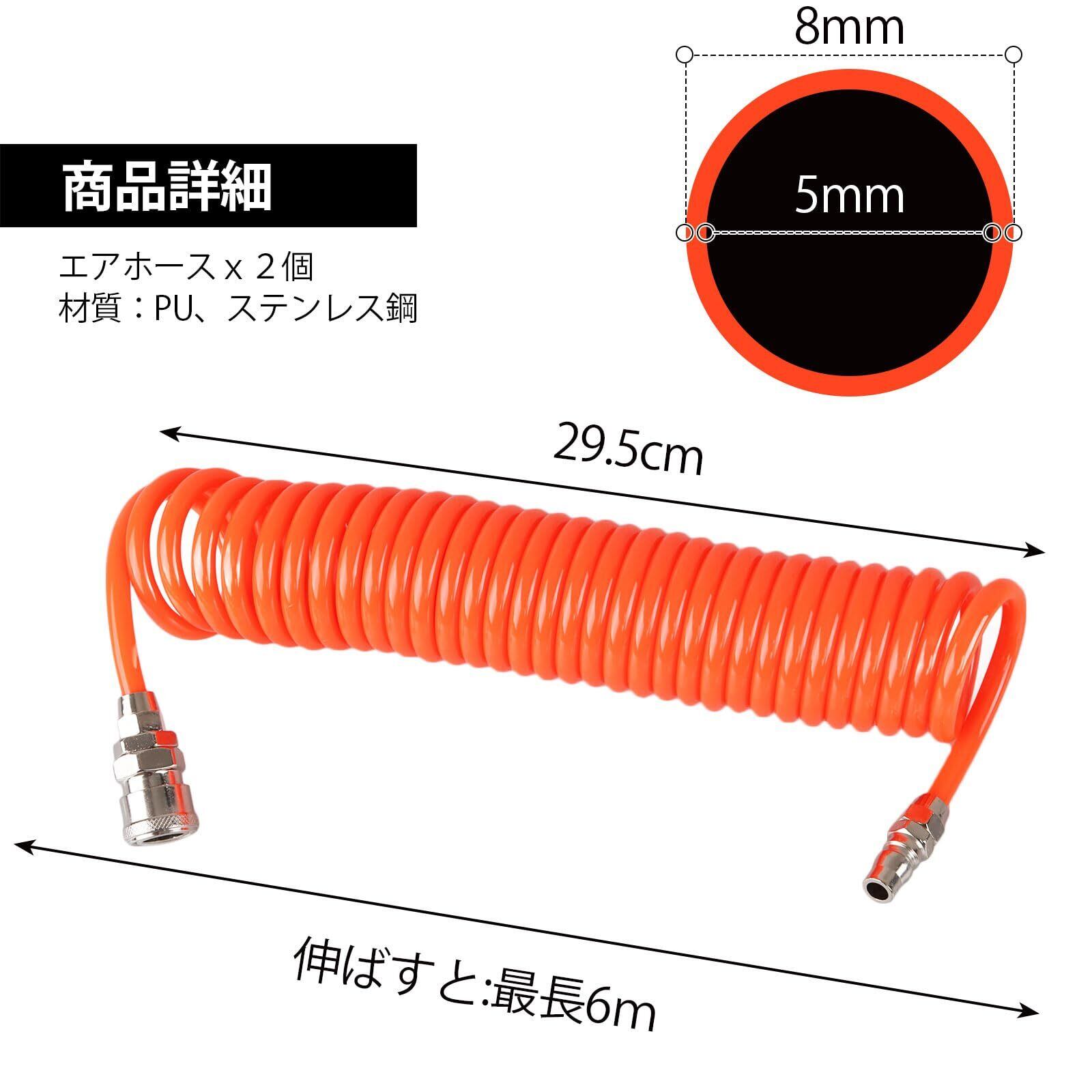 2個セット エアホース 有効長6m 内径5mm×外径8mm エアーホース スプリング エアーツール 高い弾力性 耐久性 耐高圧