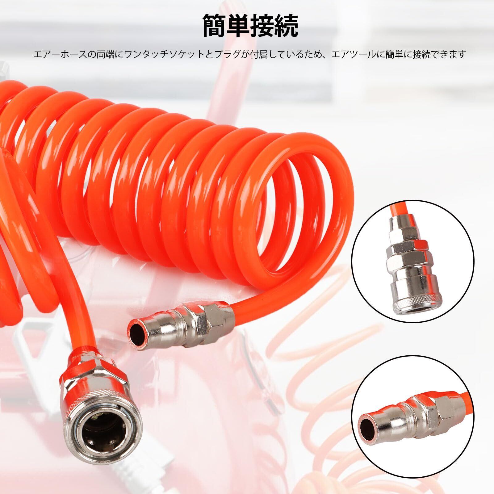 使用便利:エアーホースの両端にワンタッチソケットとプラグが付属しているため、使用する様々なエアツールに簡単に接続できます。