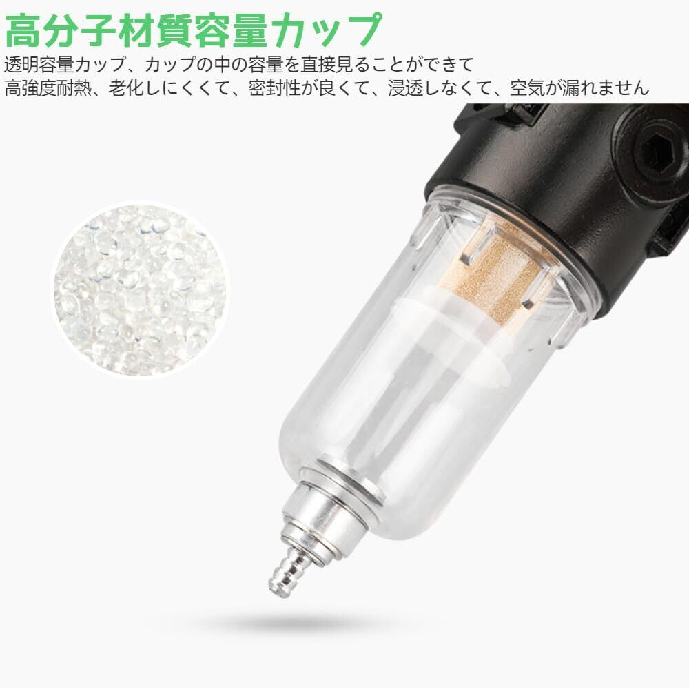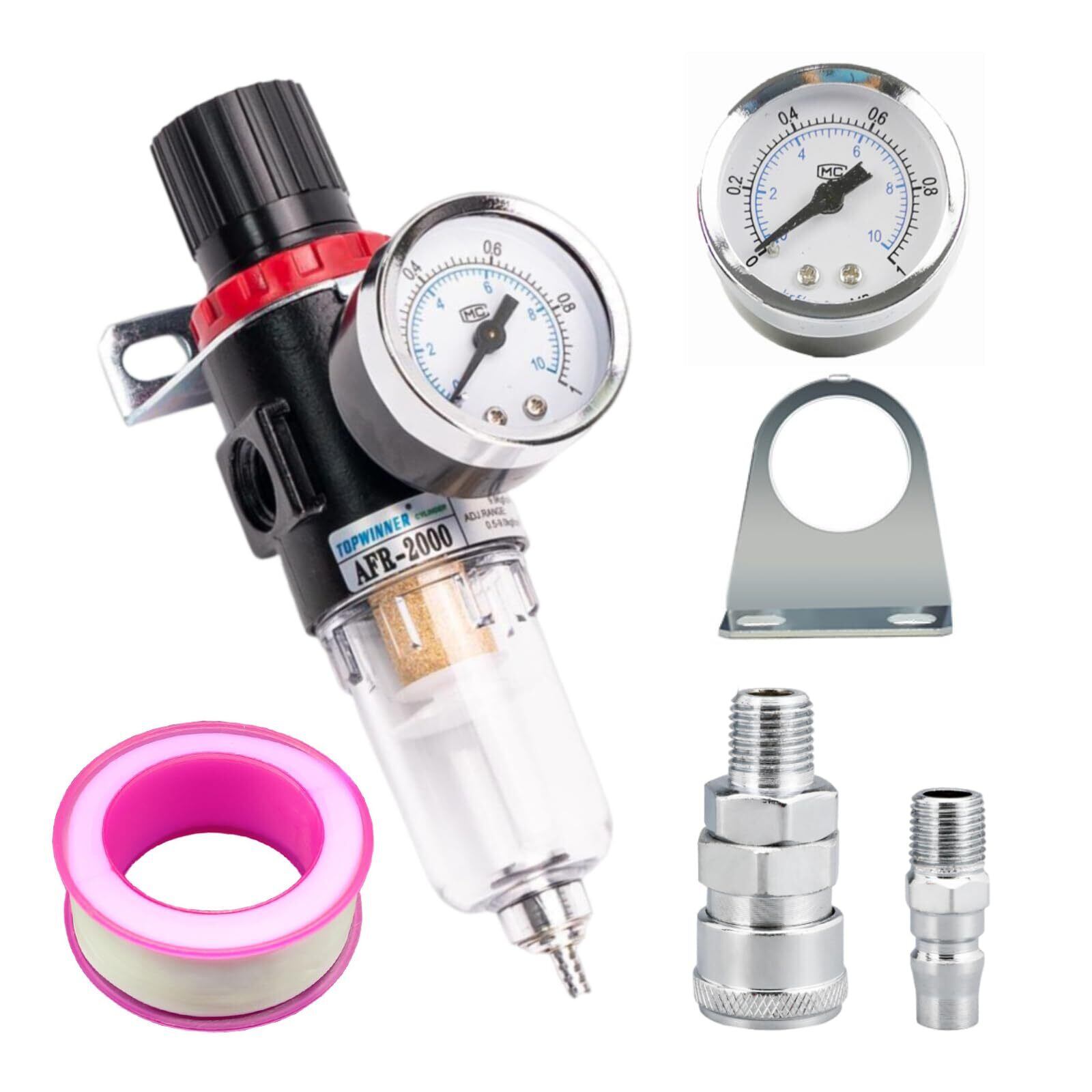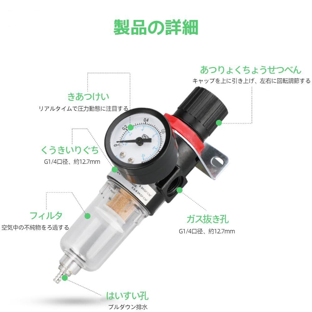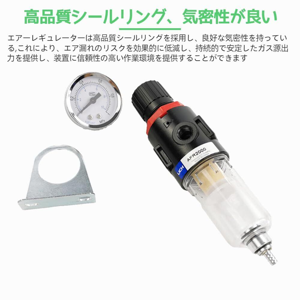 ウォーター セパレーター エアーフィルター エアコンプレッサー フィルターレギュレーター 自動的に排水 ほこり除去 除水 圧力調節 圧力計付き オス・メスカプラー付き テープシール 付属 AFR2000 1/4エアーフィルター エアコンプレッサー用アクセサリ