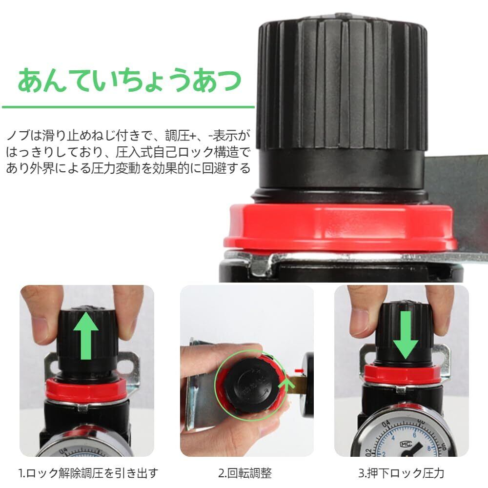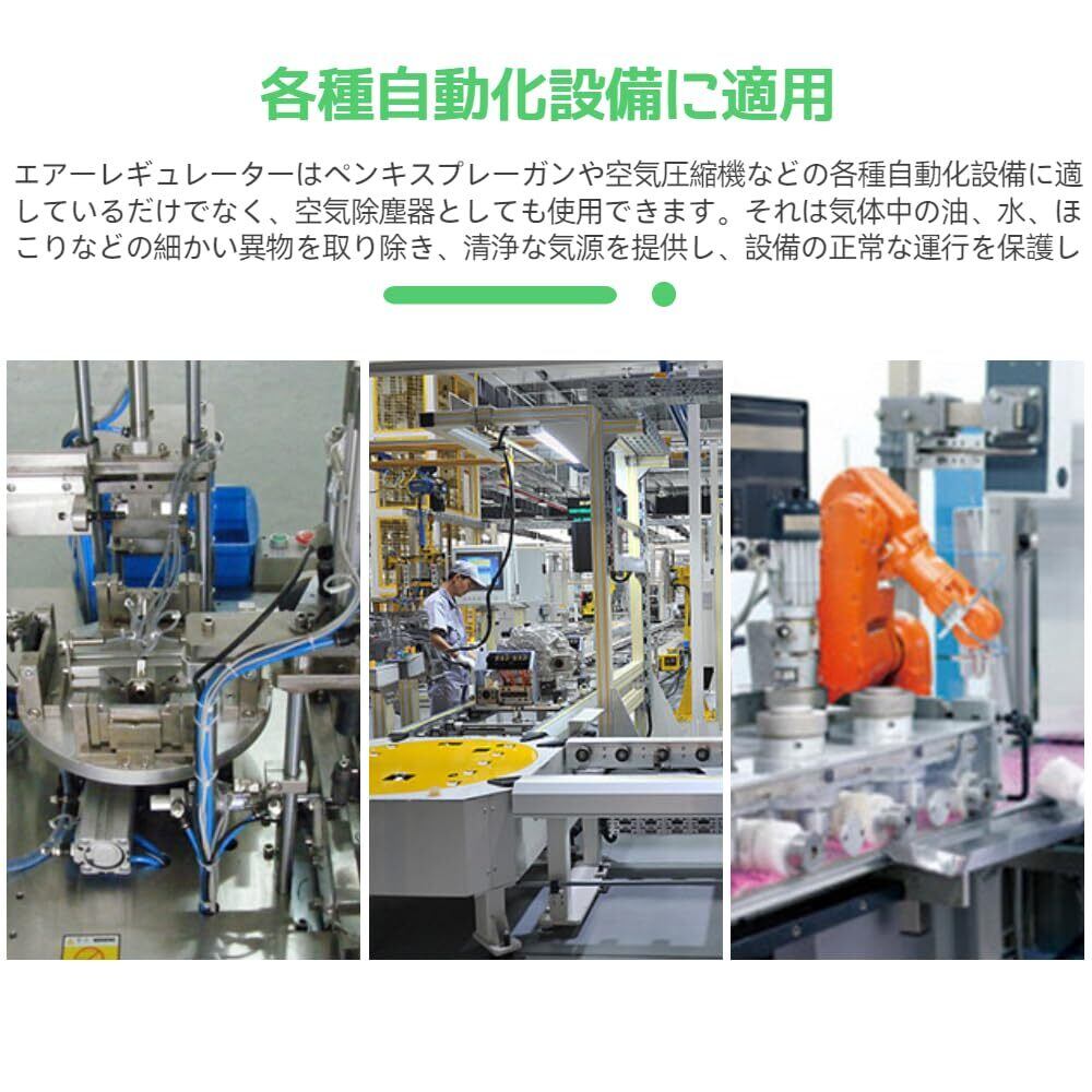 【多機能応用】エアーレギュレーターはペンキスプレーガンや空気圧縮機などの各種自動化設備に適しているだけでなく、空気除塵器としても使用できます。それは気体中の油、水、ほこりなどの細かい異物を取り除き、清浄な気源を提供し、設備の正常な運行を保護し。