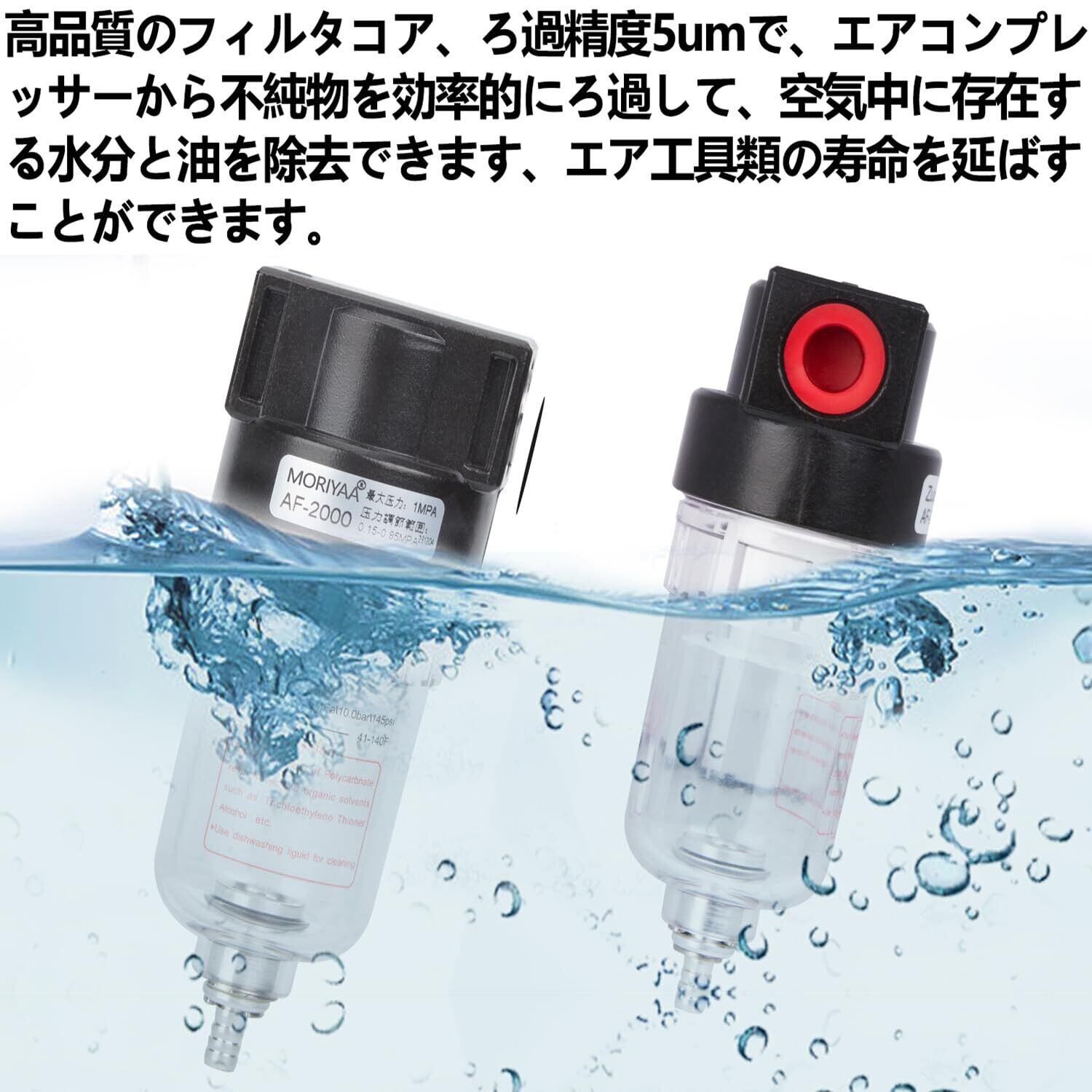 ウォーターセパレーター エアーレギュレーター エアーコンプレッサー AF2000 1/4 オイル エアーフィルター 水分除去 オスメス カプラー付き コンプレッサー用