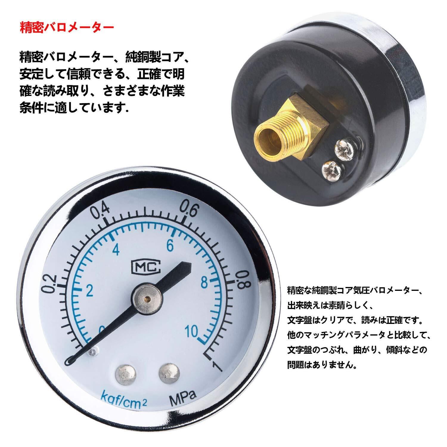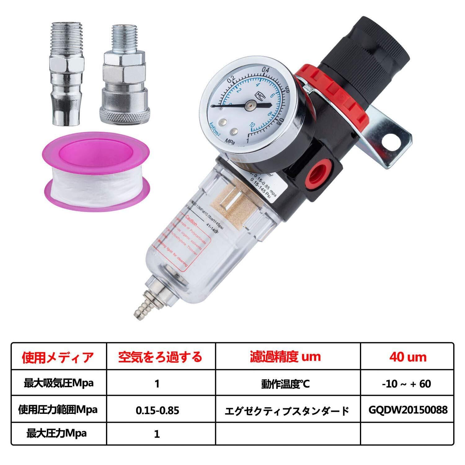【高品質素材】フィルターは取得済みの新しいピストン技術を採用しており、高圧に対する耐性が高く、耐用年数が長く、安定性が優れています。フィルターエレメントは純銅フィルターエレメントを使用しており、より精確な濾過と長い耐用年数を実現します。圧力計は、より正確な圧力調整を実現するために全銅コアを使用しています。差圧ドレン:空気圧が0.05Mpa以下になると自動的に水が排出されます。