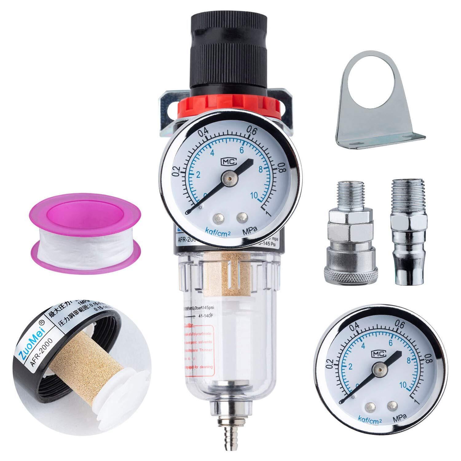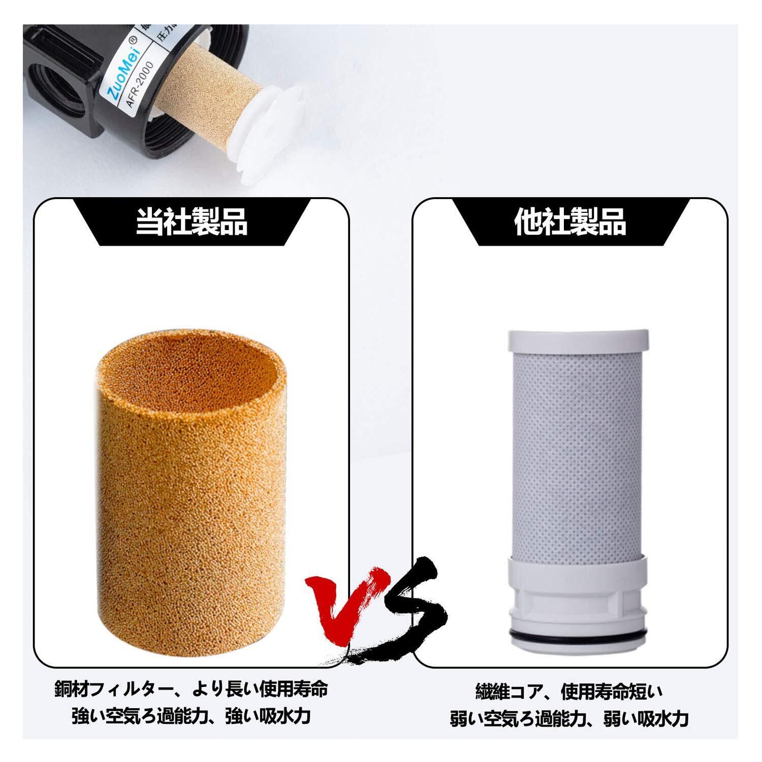 ウォーター セパレーター エアーコンプレッサー AFR2000 1/4エアーフィルター オイルセパレーター 水分除去 精確圧力調節 純銅フィルターエレメント自動排水 オス・メスカプラー付き エアコンプレッサーの付属品1年付き