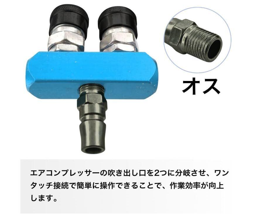 【2025最新】ツインソケット エアーカプラー 2分岐 エアーツール 常圧汎用タイプ エアコンプレサー用 エアーソケット エアーホース用 PN-482
