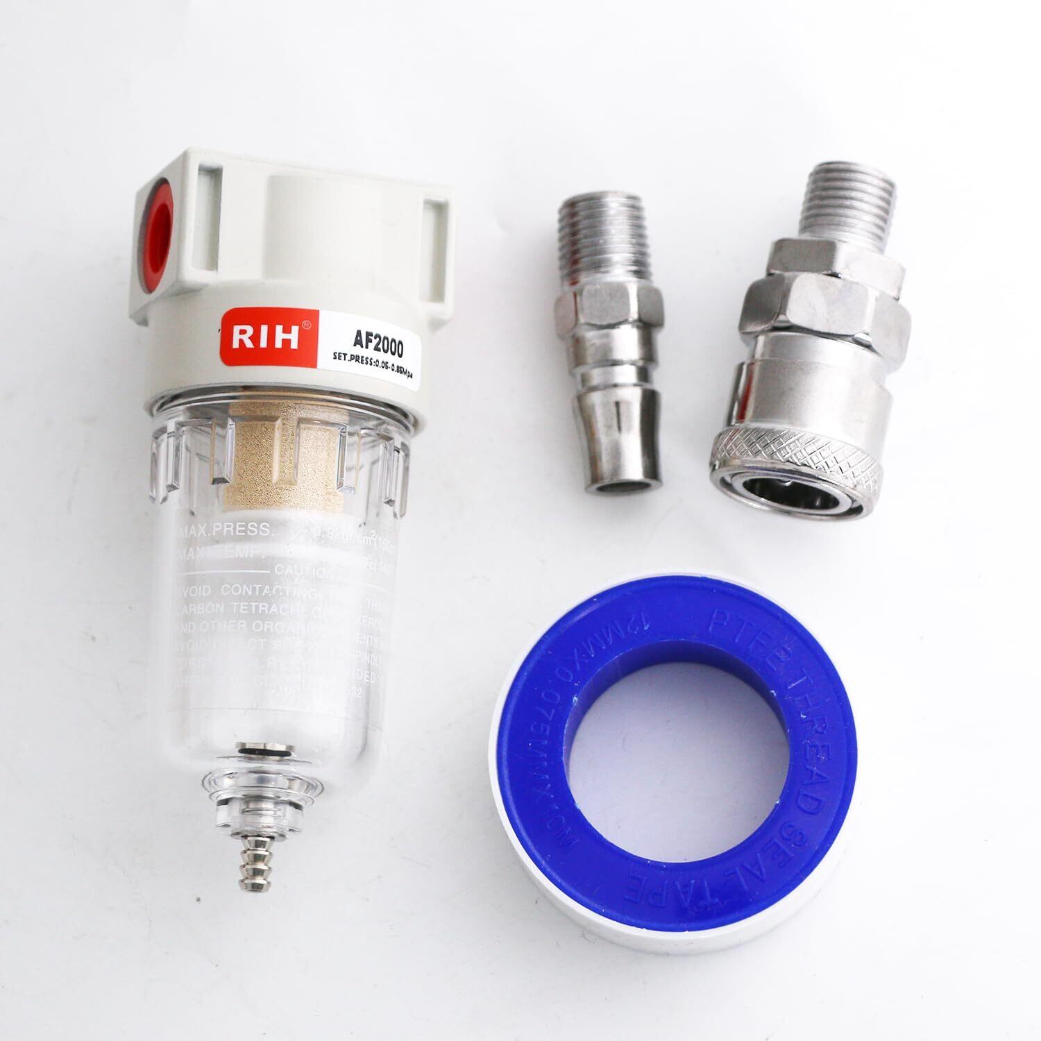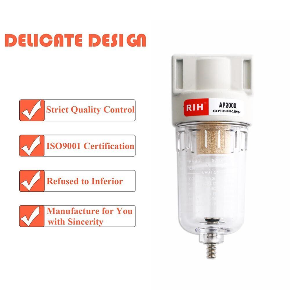 AF2000 ウォーターセパレーター 1/4" エアーフィルター 水除き ほこり除き 水分除去 カプラー付きエアコンプレッサー用