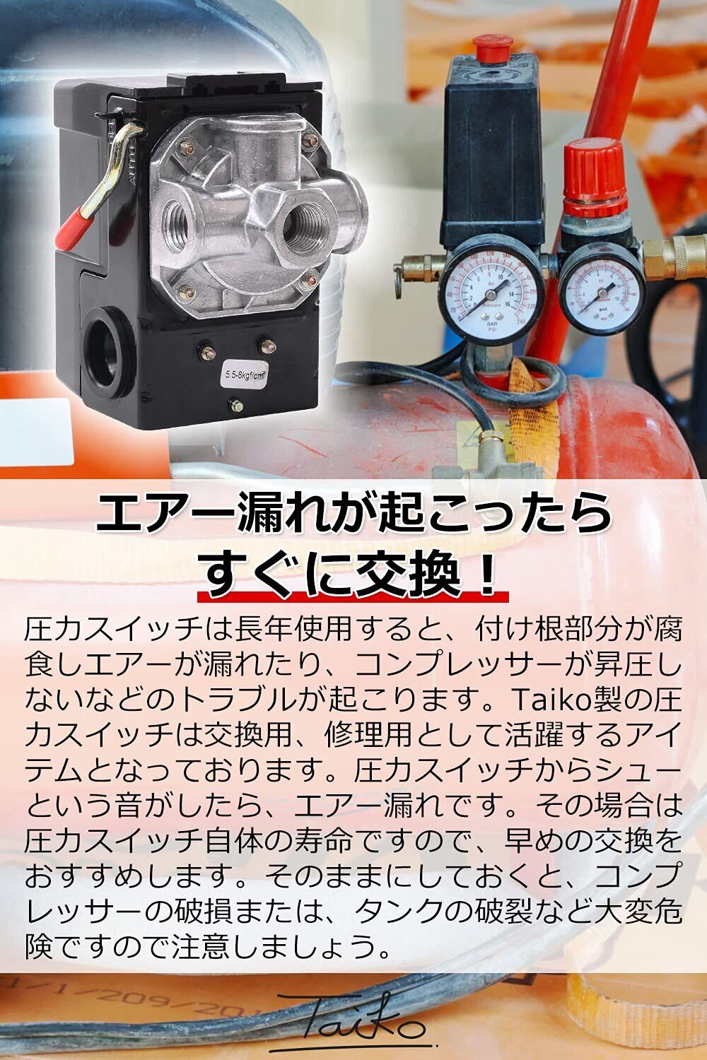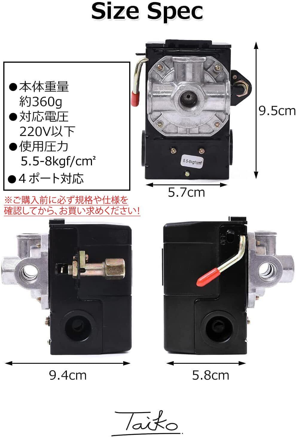 圧力スイッチ コンプレッサー圧力スイッチ (4ポートタイプ/220V) コンプレッサースイッチ 「サイドスイッチ型 交換用 修理用 補修用 としてご利用頂けます」 エアコンプレッサー 【Taiko】
