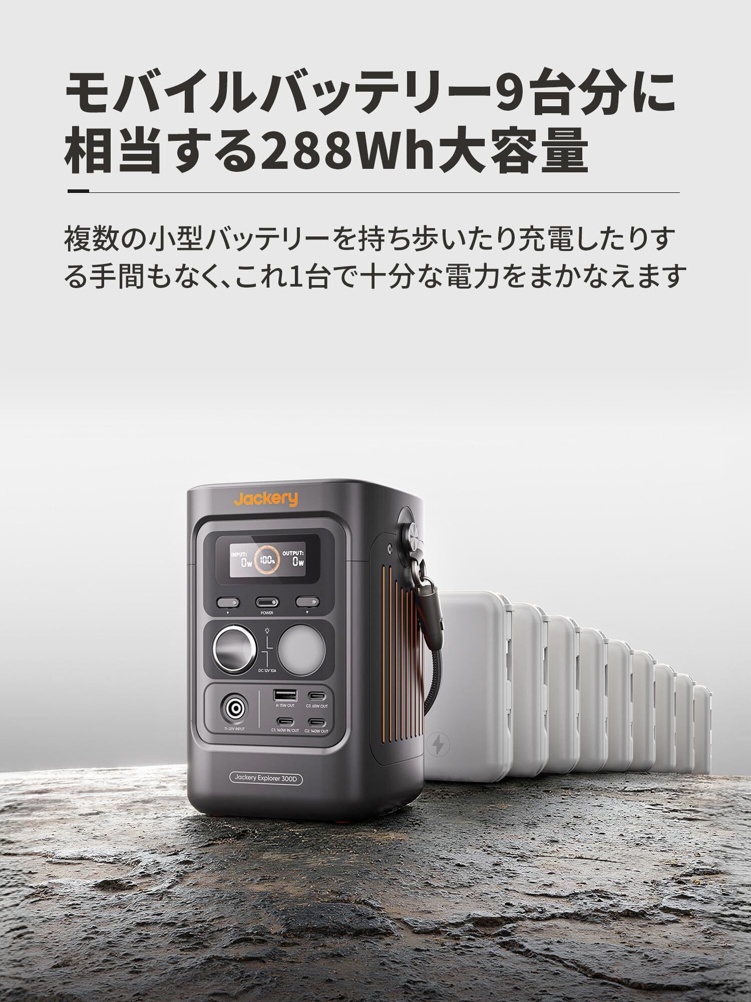 Jackery (ジャクリ) ポータブル電源 300D 288Wh リン酸鉄 長寿命 定格出力300W 車中泊 家庭用 蓄電池 停電対策 台風対策 節電対策 防災対策 ジャクリ