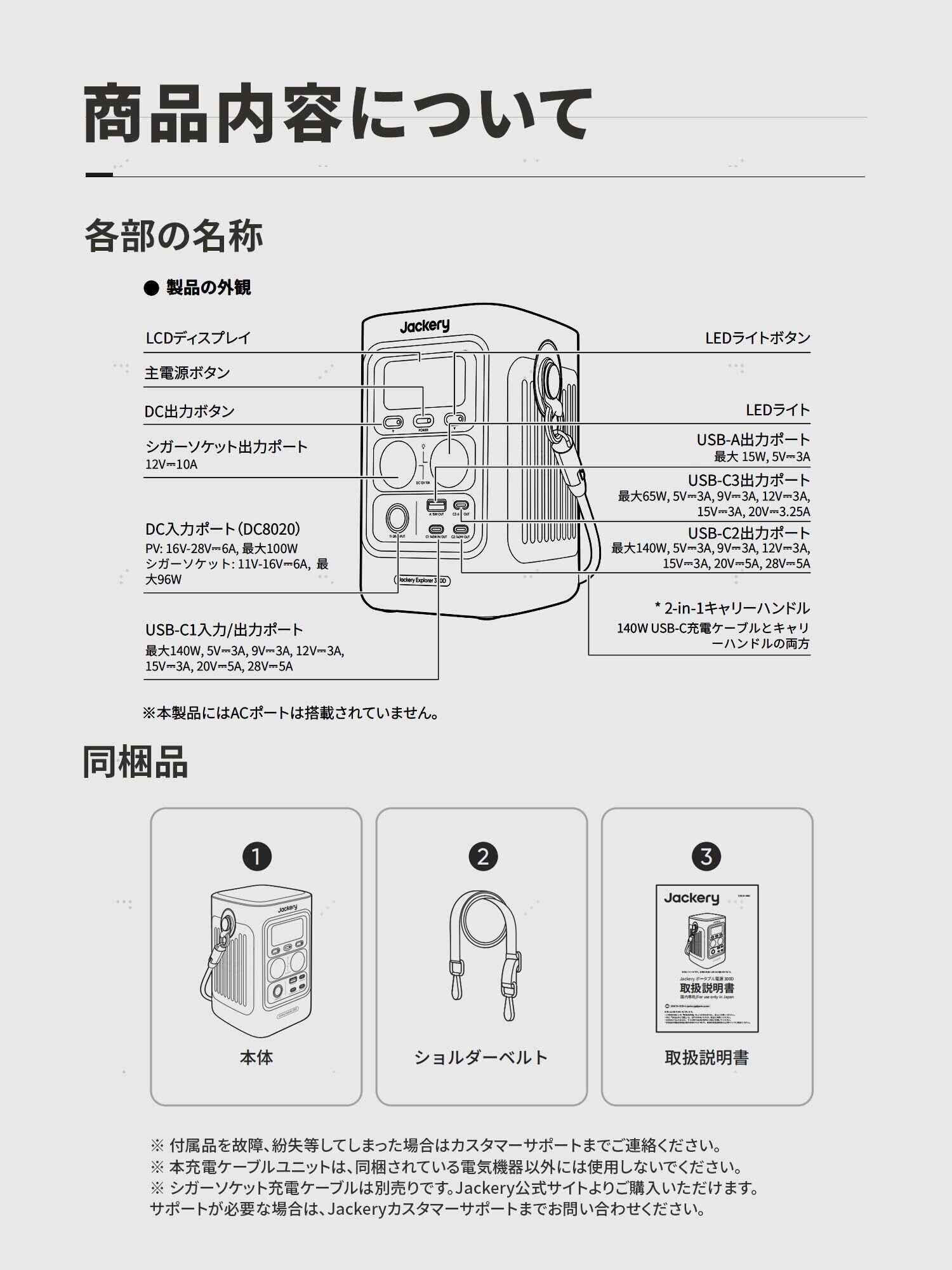 【合計300Wの出力が可能な高出力モデル】USB-Aポート1基(15W)と、USB Type-C(USB-C)ポート3基(140W×2、65W×1)を搭載。さらにDC出力(120W)にも対応、合計5ポートで最大300Wの出力に対応しています。スマートフォンからノートPC、車載冷蔵庫まで幅広く同時に給電できる、高出力モデルです。