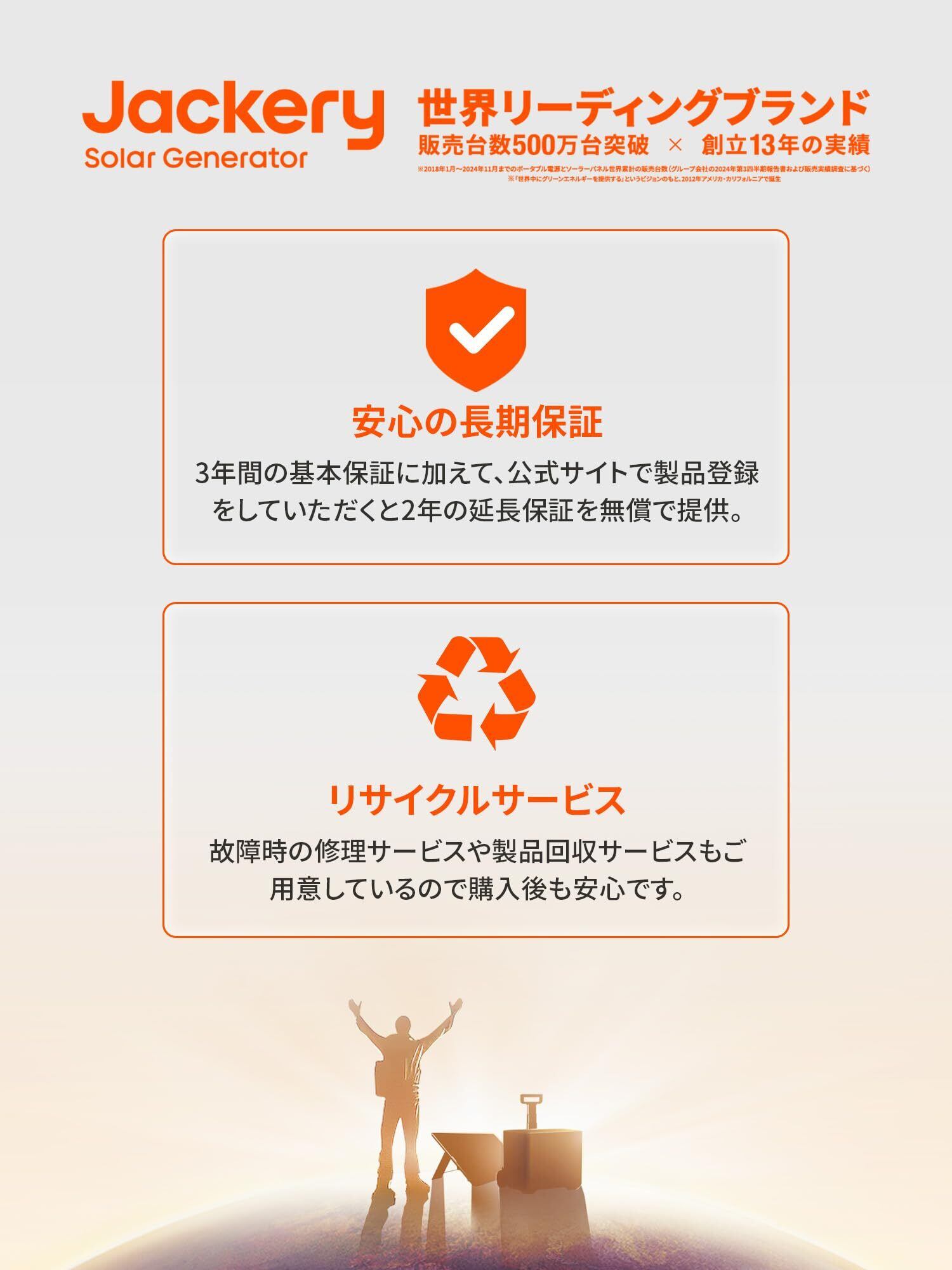 【安心の長期・リサイクルサービス】3年間の基本に加えて、公式サイトで製品登録をしていただくと2年の延長を無償で提供。故障時の修理サービスや製品回収サービスもご用意しているので購入後も安心です。