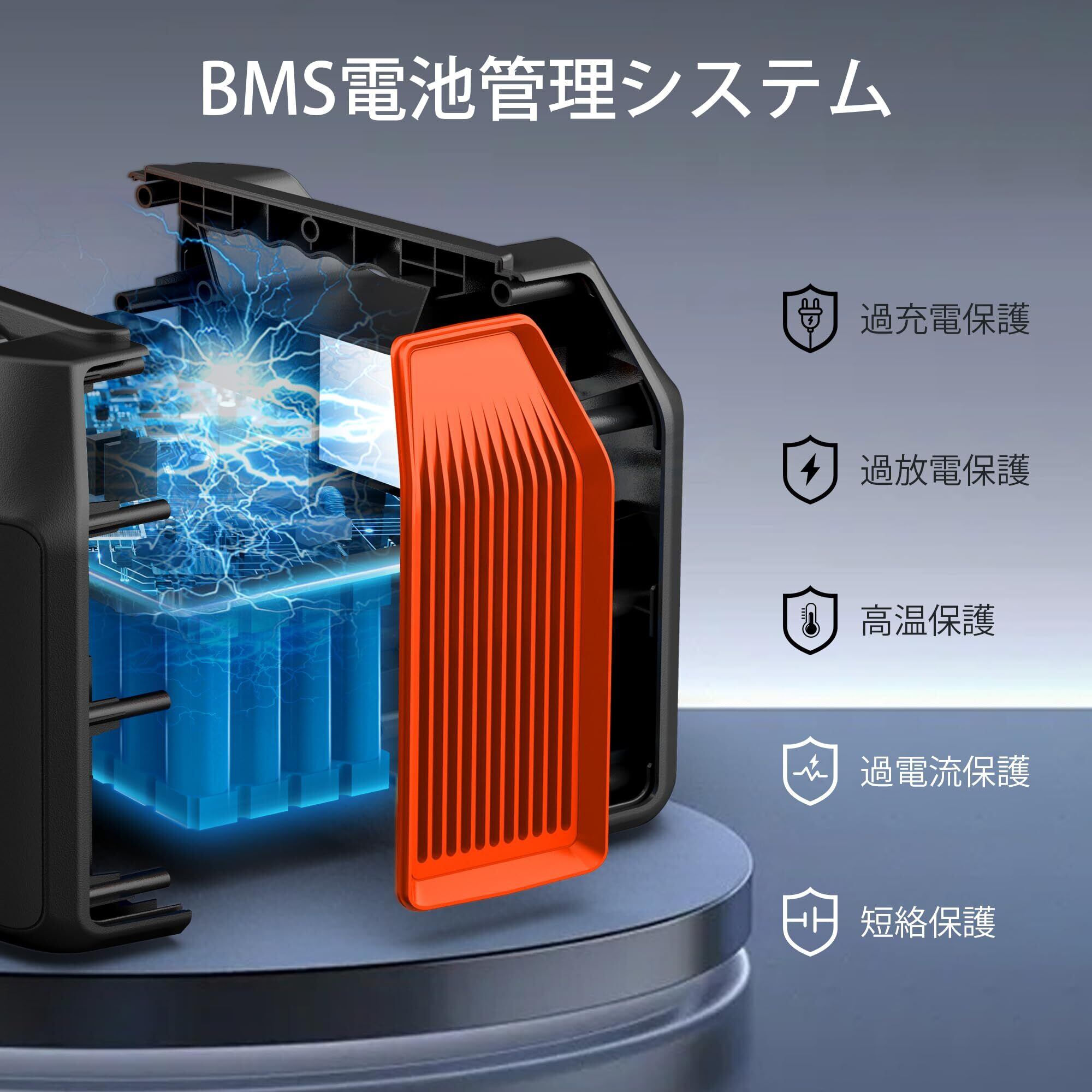 【BMS搭載 高い安全性】ぽーたふる電源はPSE、FCC、UN38.3、CE、RoHSなど必要な認証が取得しております。安全性の高いリチウムバッテリーを採用し、過充電保護、過放電保護、過電圧保護、過電流保護、短絡保護、過熱保護など、先進のバッテリーマネジメントシステム (BMS)も搭載して、電圧や温度を適切に制御して、バッテリーのエネルギー利用率を高めて、バッテリー寿命も延長されます。