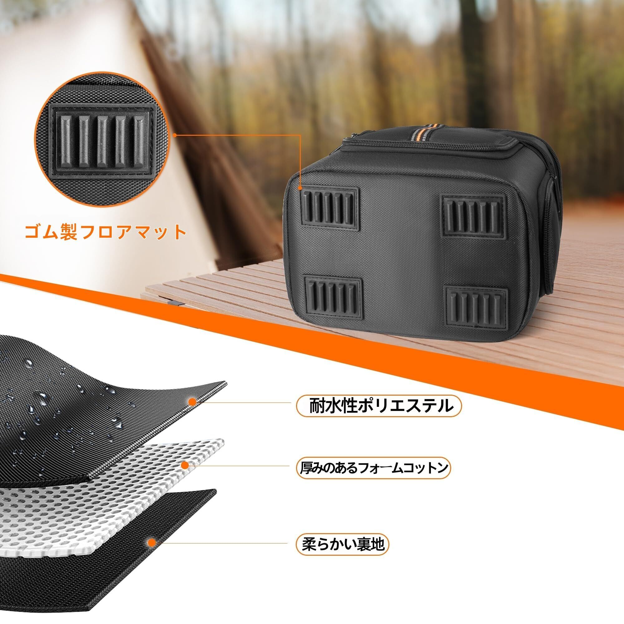 [全方位保護設計] 耐水性ポリエステル + 厚めのフォームコットンで、衝撃・雨・塵から電源を保護。ゴム製フロアマットで滑り止め&底面衝撃吸収。