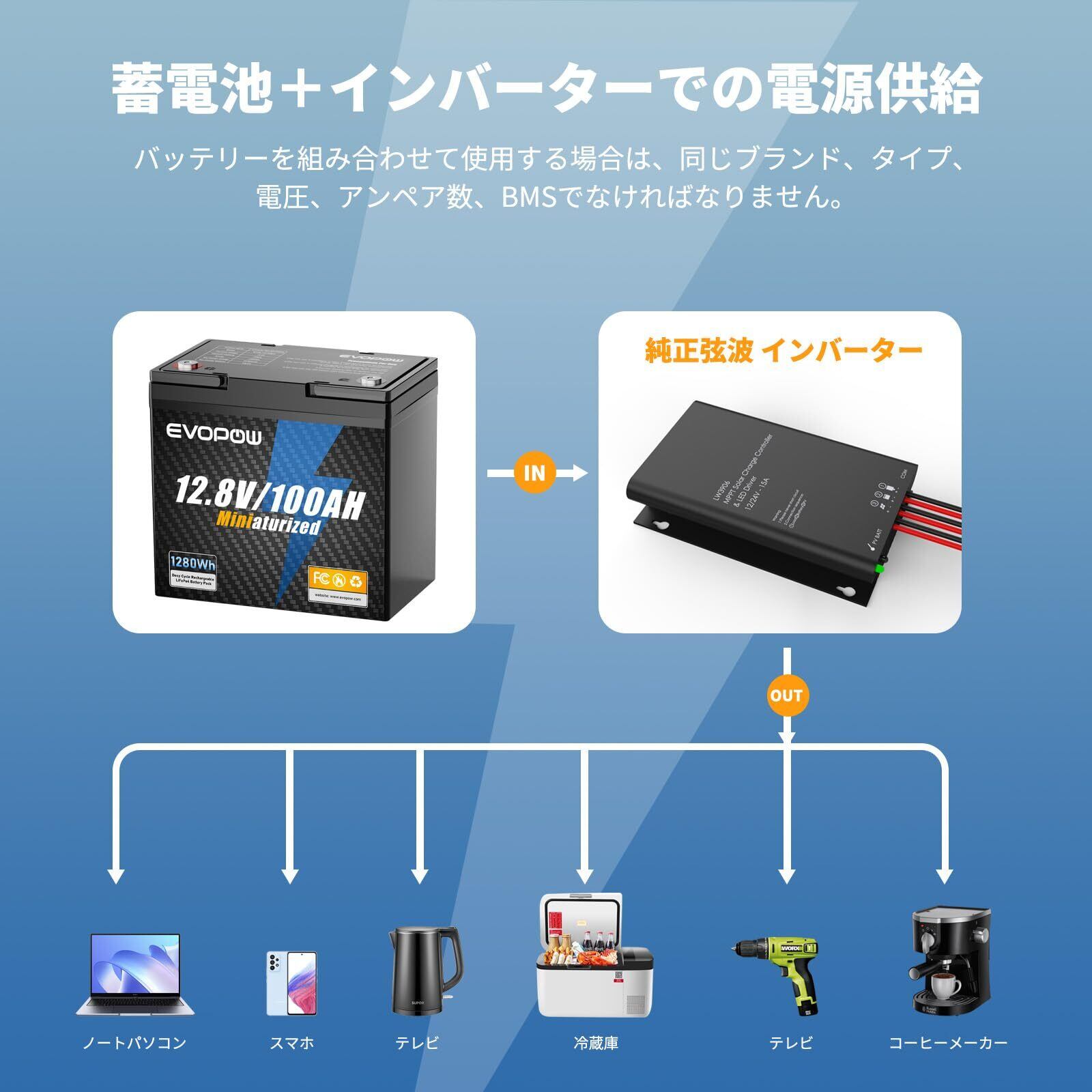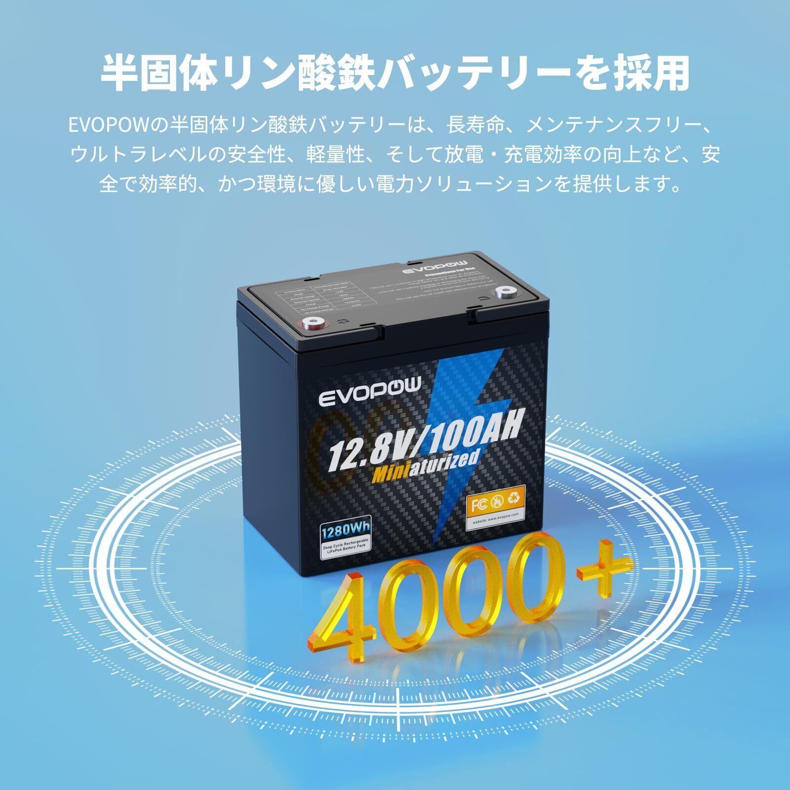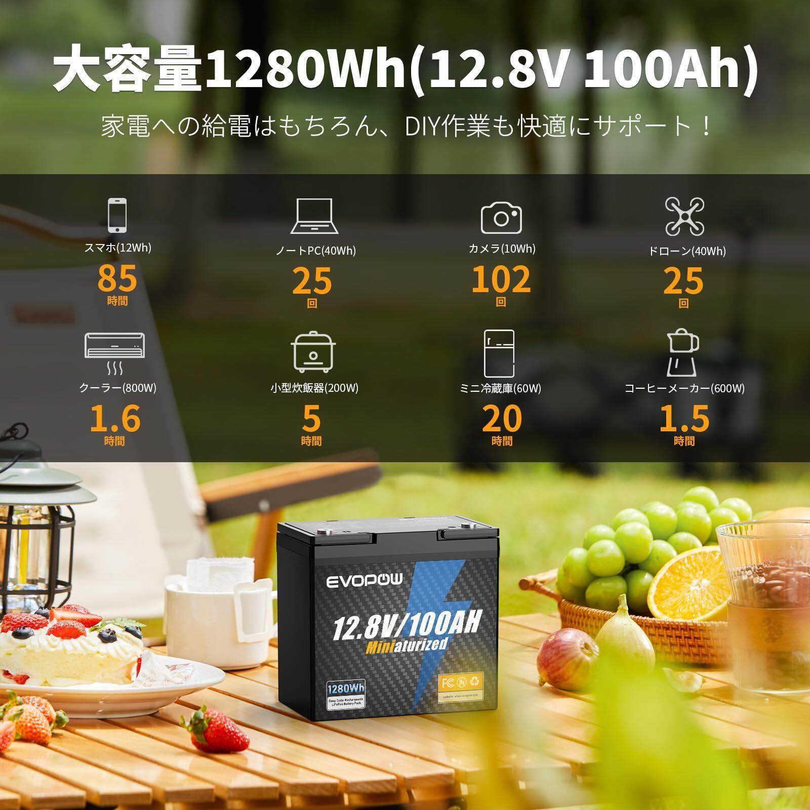 1280Wh リン酸鉄リチウムイオンバッテリー 1280W出力 12.8V 100Ah 半固体LiFePO4採用 10年長寿命 100AのBMS 4000-15000回サイクル BCIグループサイズ24 小型軽量 RV サブバッテリー ソ-ラ-蓄電 車中泊 オフグリッド自家発電 バックアップ電源 ポ-タプル電源DIY ボ-ト レキモ一タ- エア-ポンプに最適 コンパクト 日本語取扱説明書付き