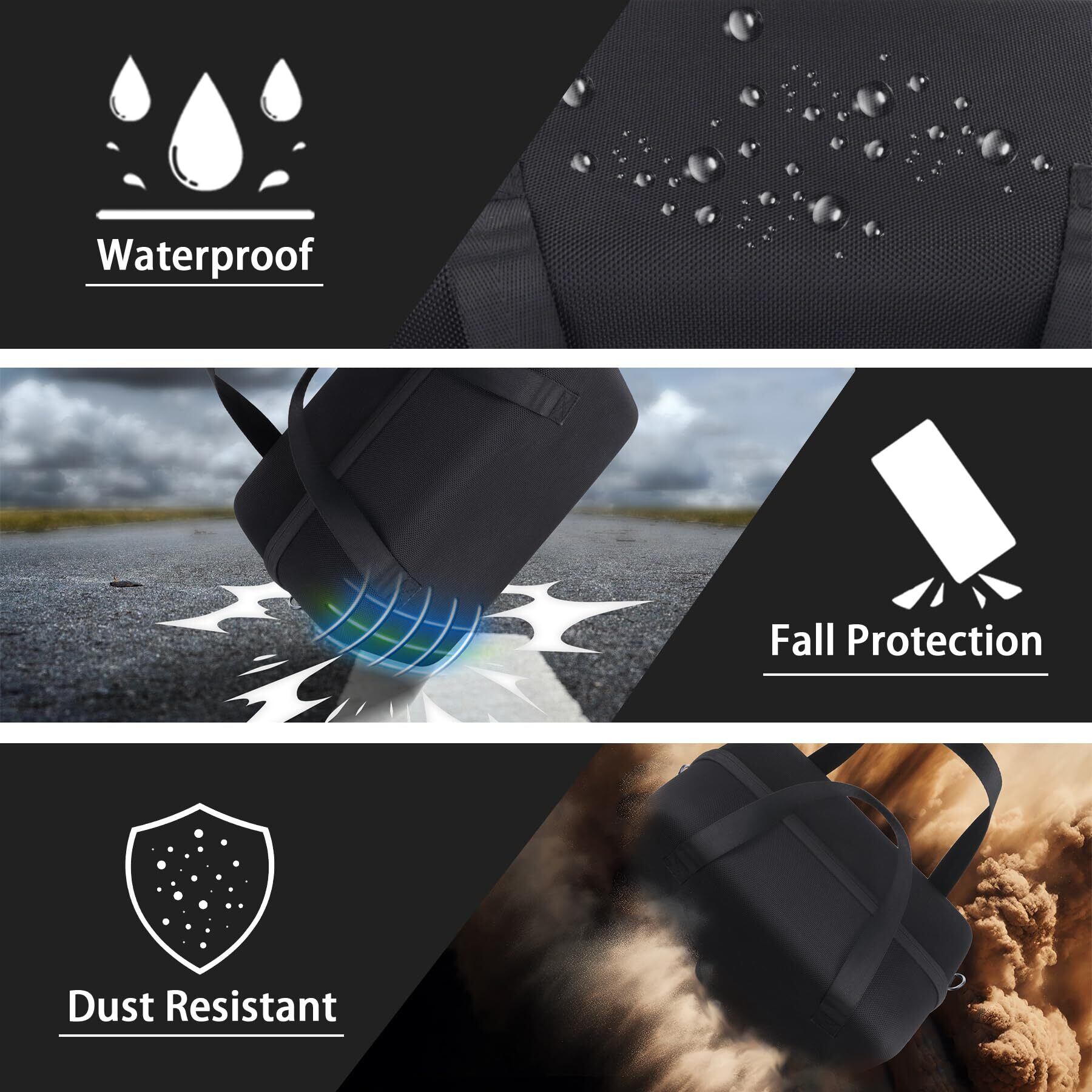 【外層は表面防水】外側の層はEVA素材を採用してハードナイロン製で、硬く、耐衝撃性、傷防止に優れています。 表面防水と防塵性にも優れています。Anker Solix C300 Portable Power Station ポータブルバッテリー 288Whをしっかりと保護できます。
